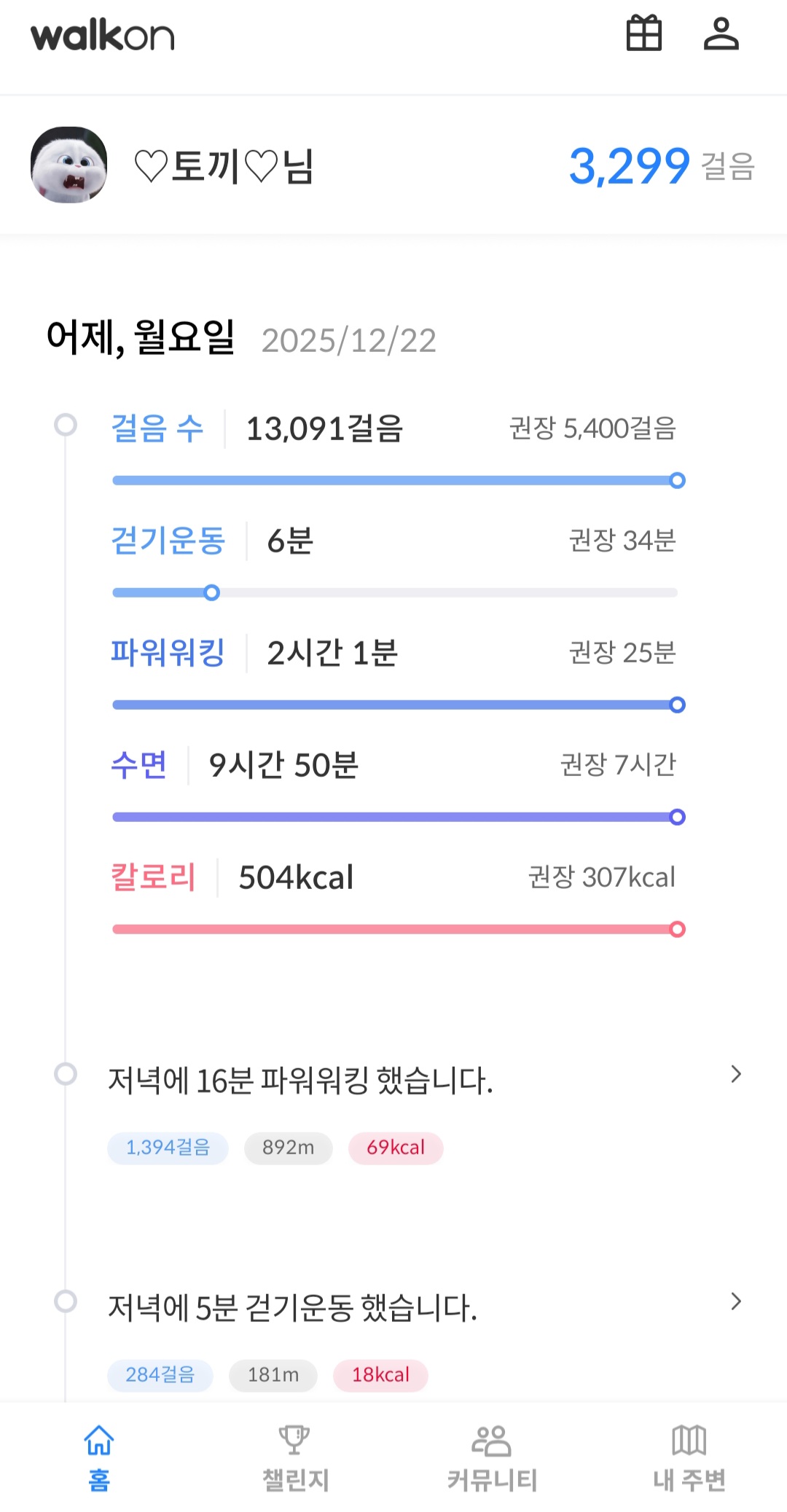 챌린지 적합도가 부족한 경우 비전시 (본인만 보임) 및 적립되지 않을 수 있습니다.