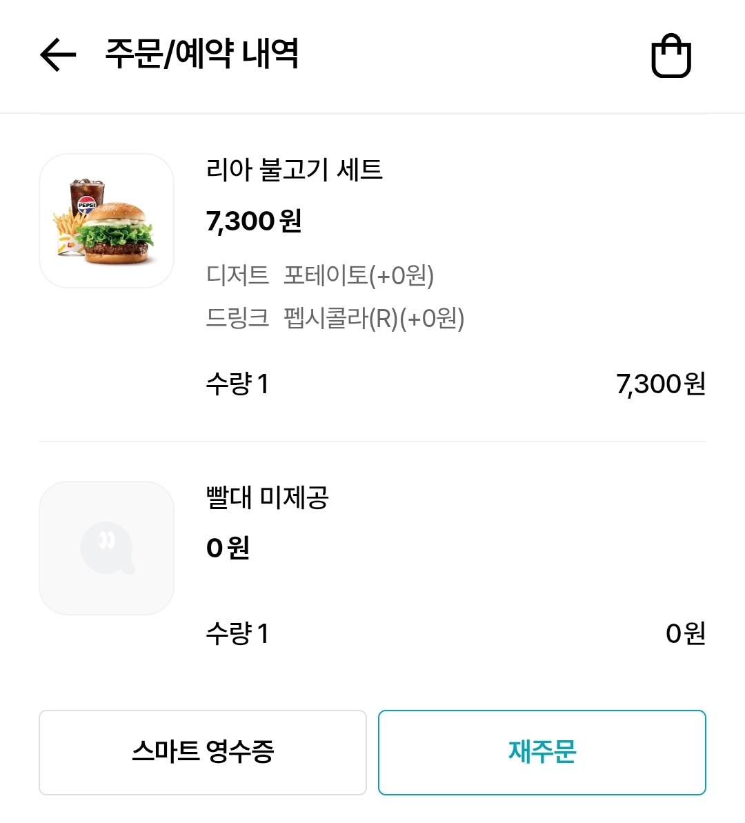 햄버거 세트 주문시 빨대 안 받기