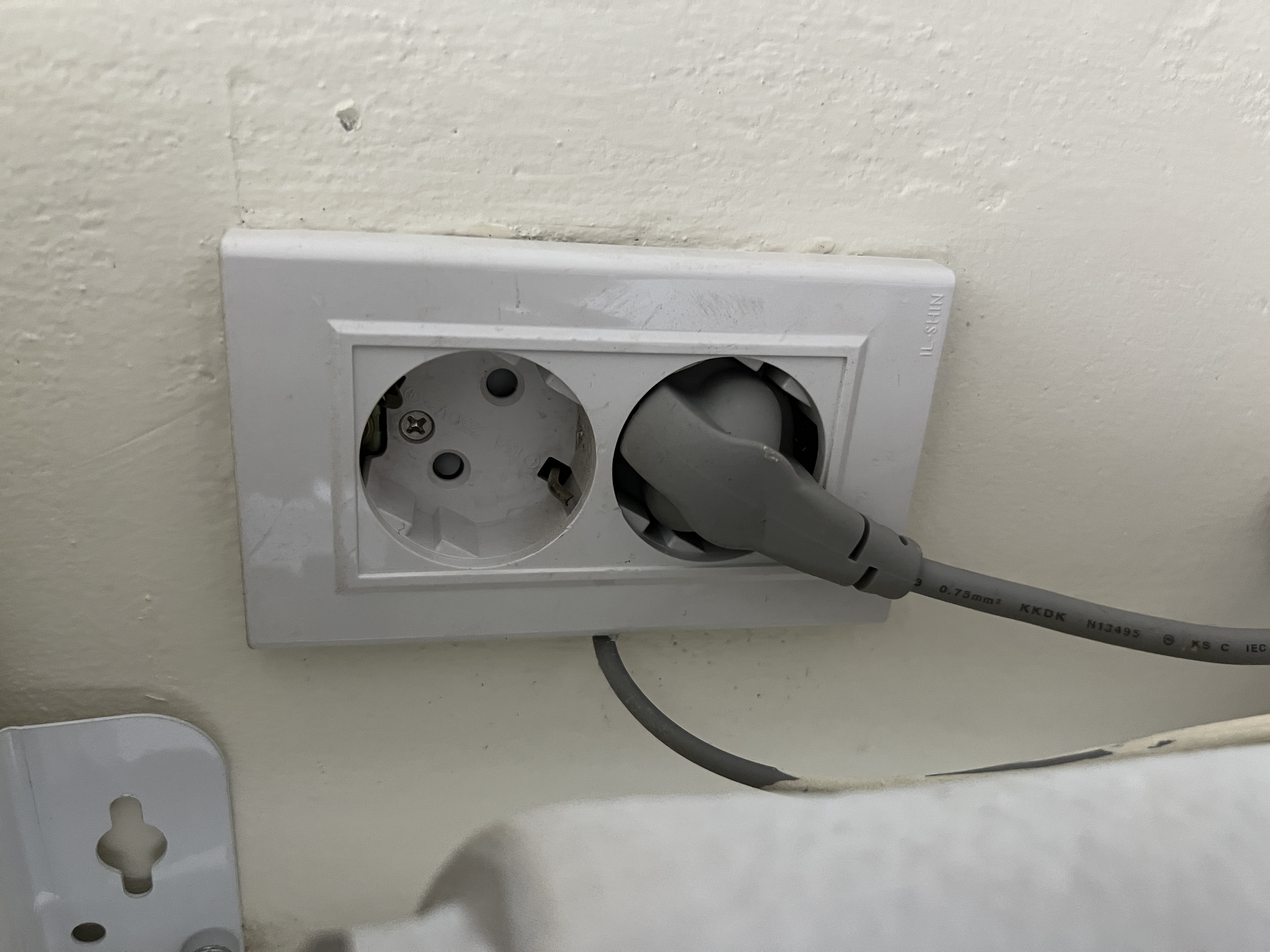 위 콘센트는 전자레인지 멀티탭이라 뺐고, 아래 콘센트는 보일러라 빼지 못합니다ㅠ