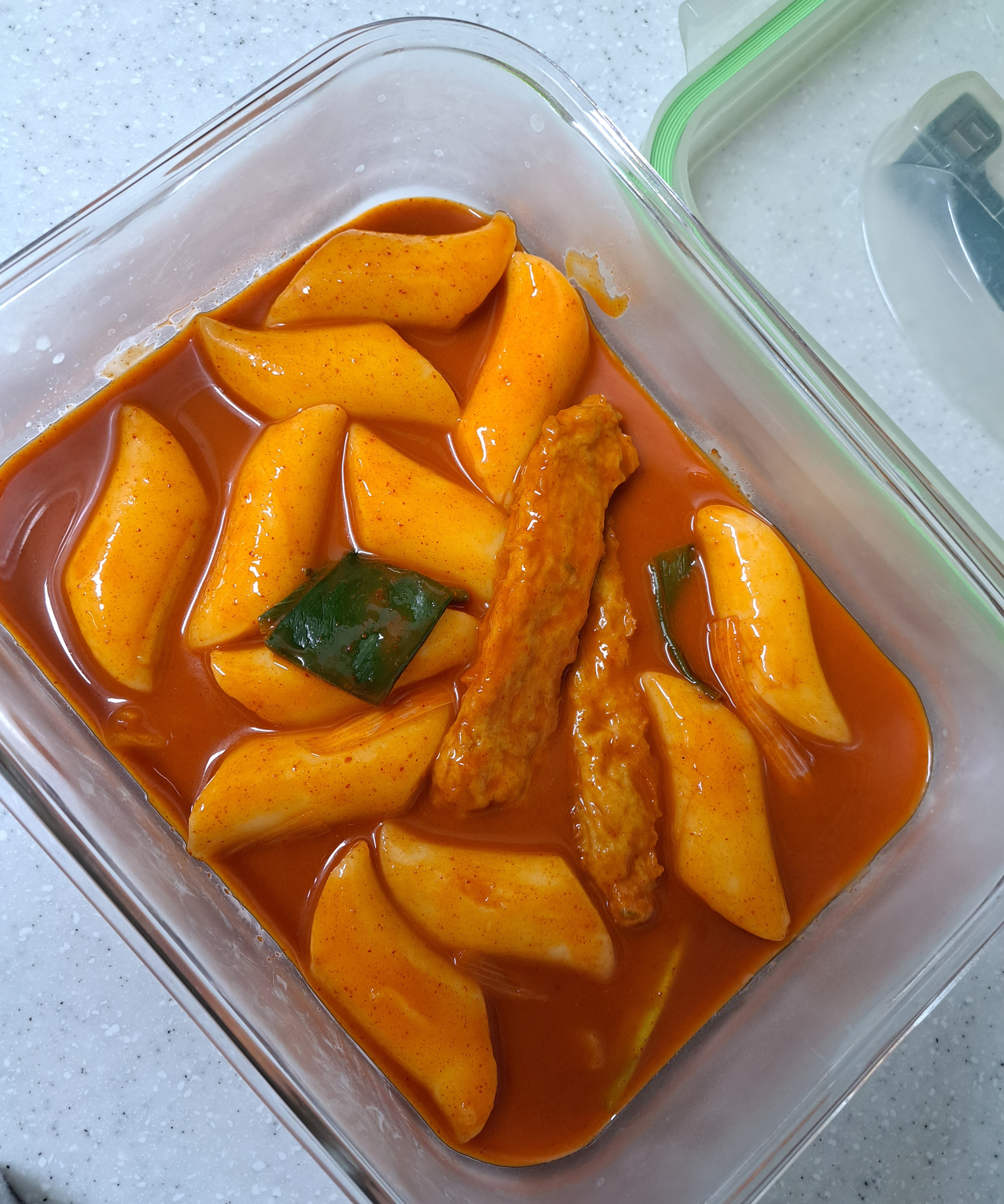 다회용기에 떡볶이 포장해왔어요