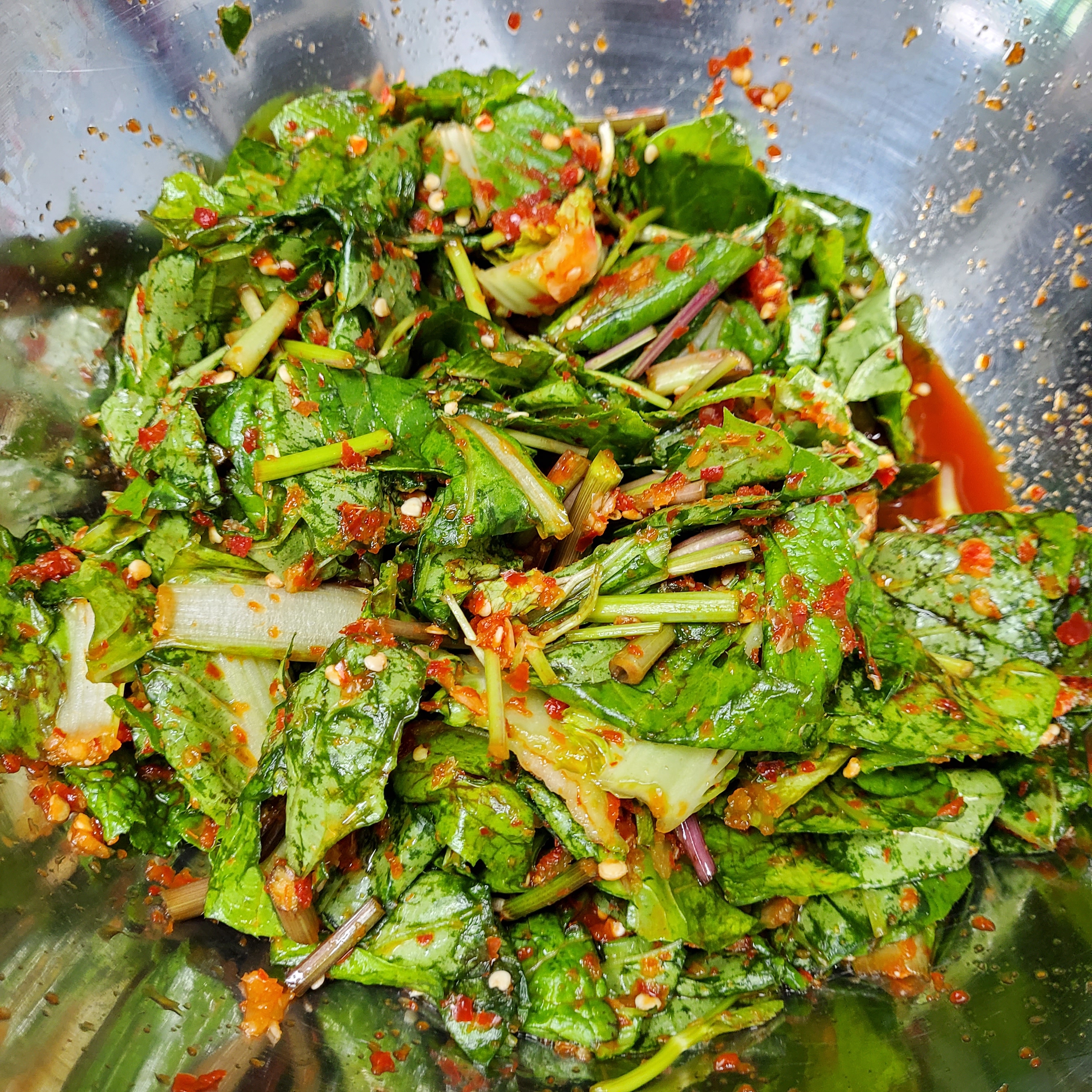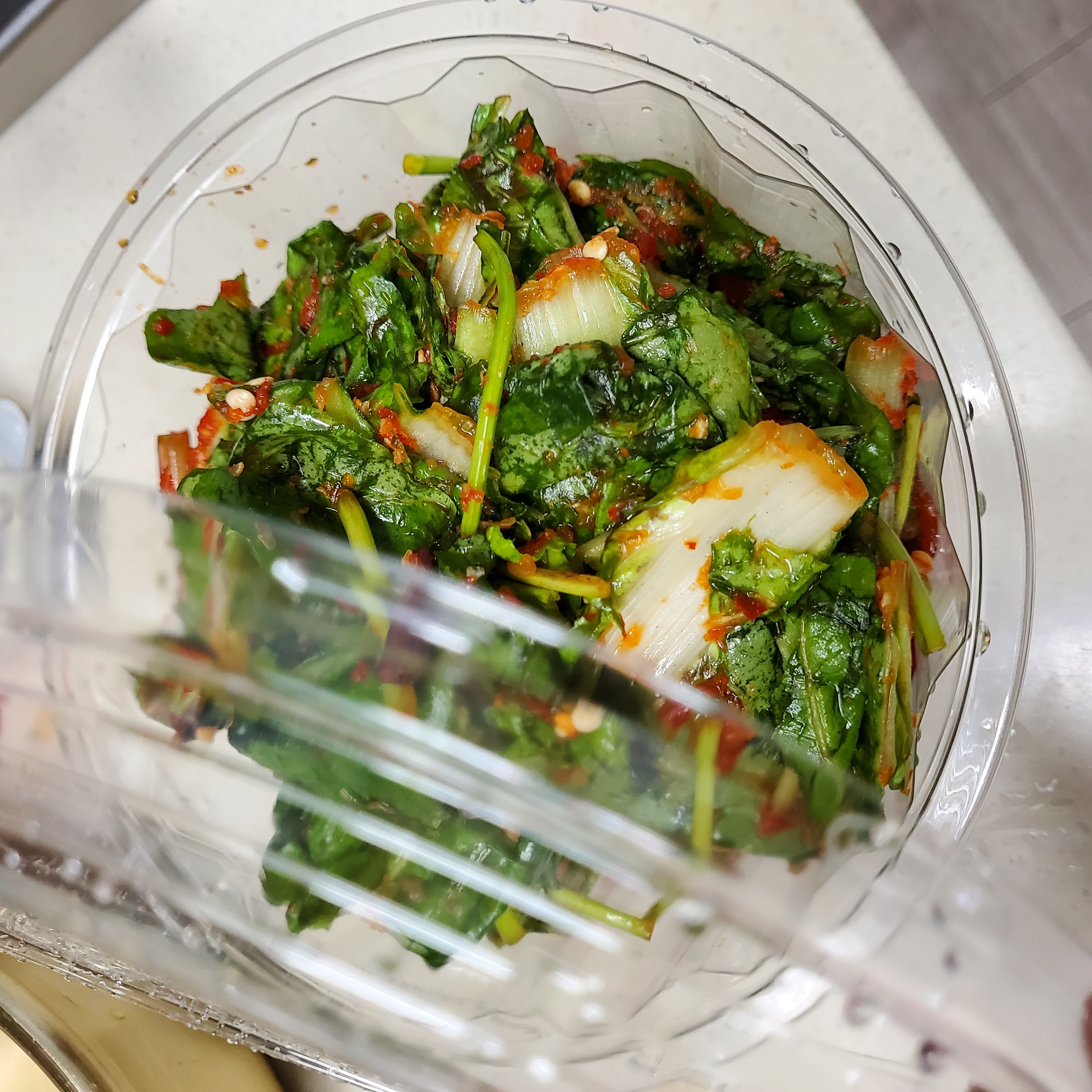 회사에서 바빠 라면 먹으며 야근한다기에 급하게 금방한 겉절이 용기에 담아 보내봅니당