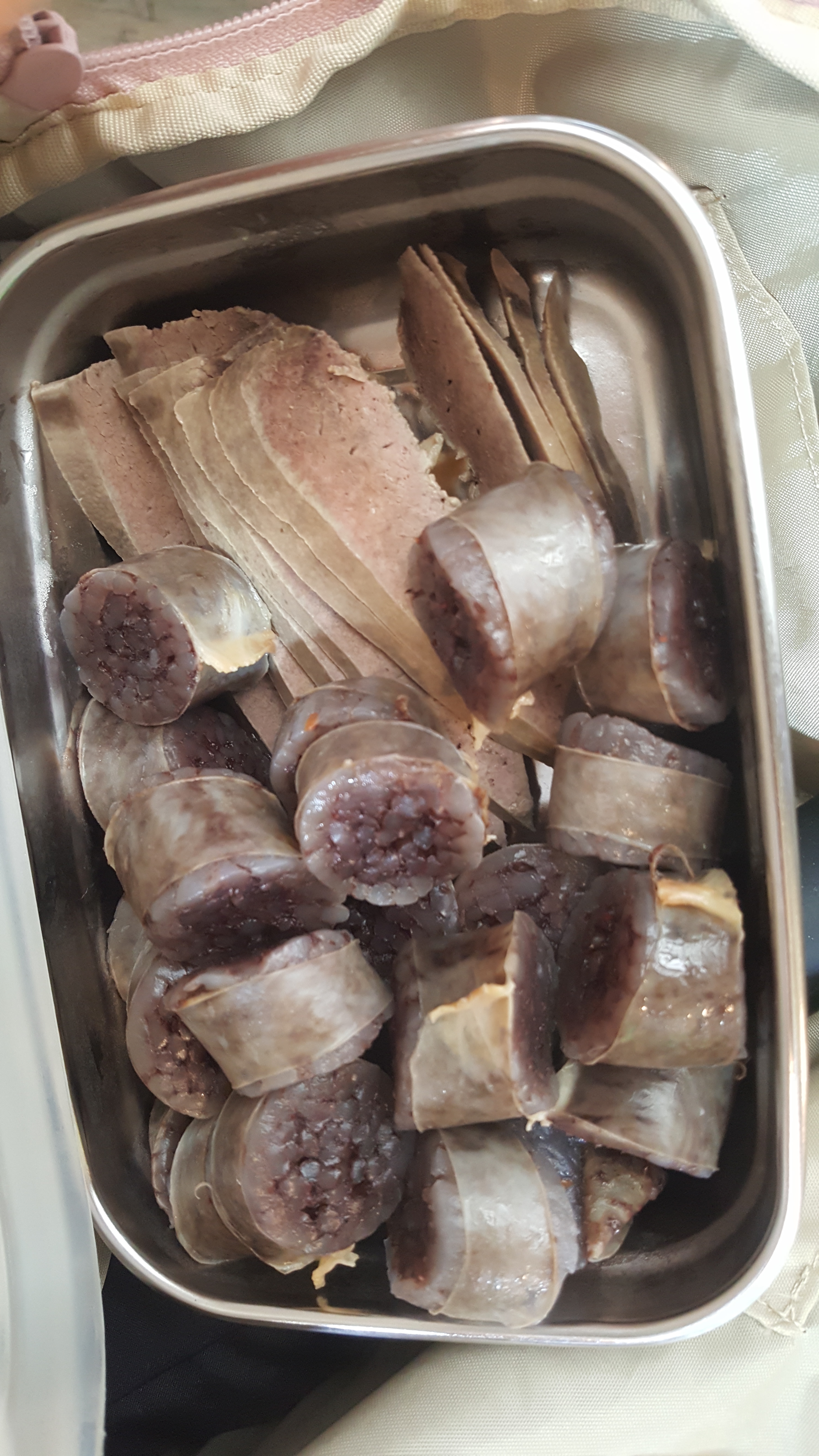 순대 사왔어요. 비닐없이 가방에 쏙 담아옵니다.