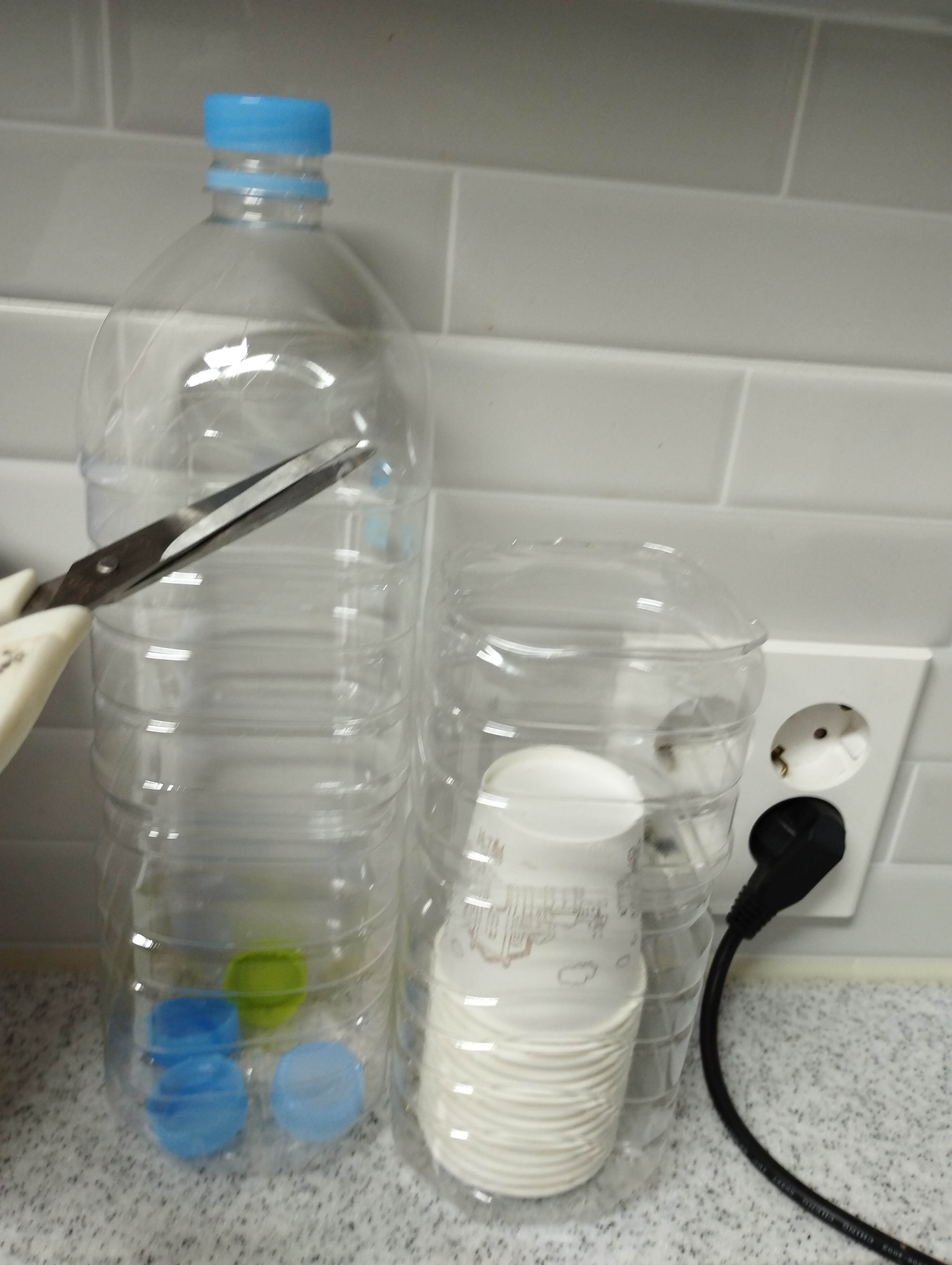 물병에칼집넣어서 뚜껑보임 쏙넣어주고있어요