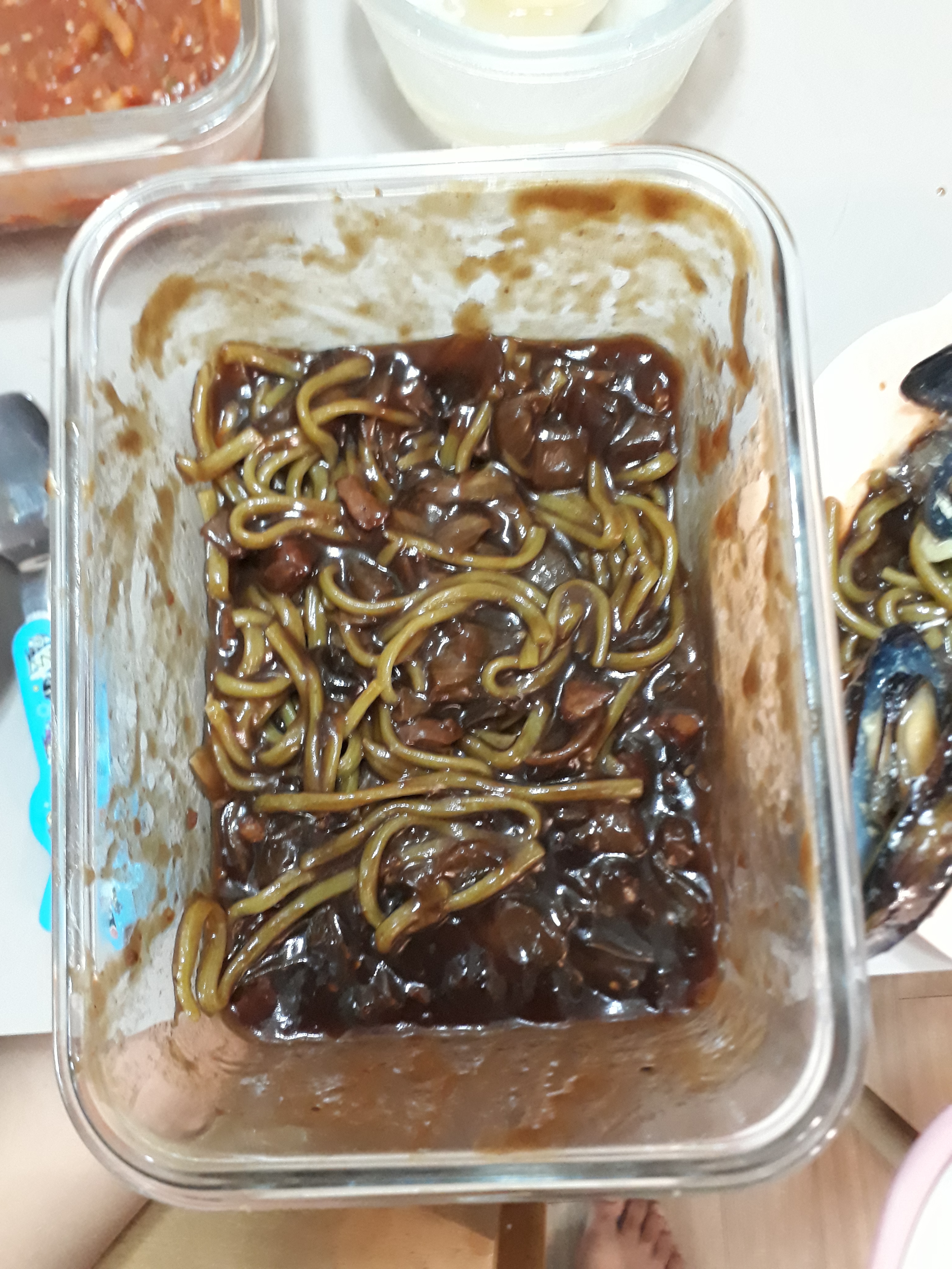 중국집에서 짜장면이랑 기스면 용기내서 포장해왔어요