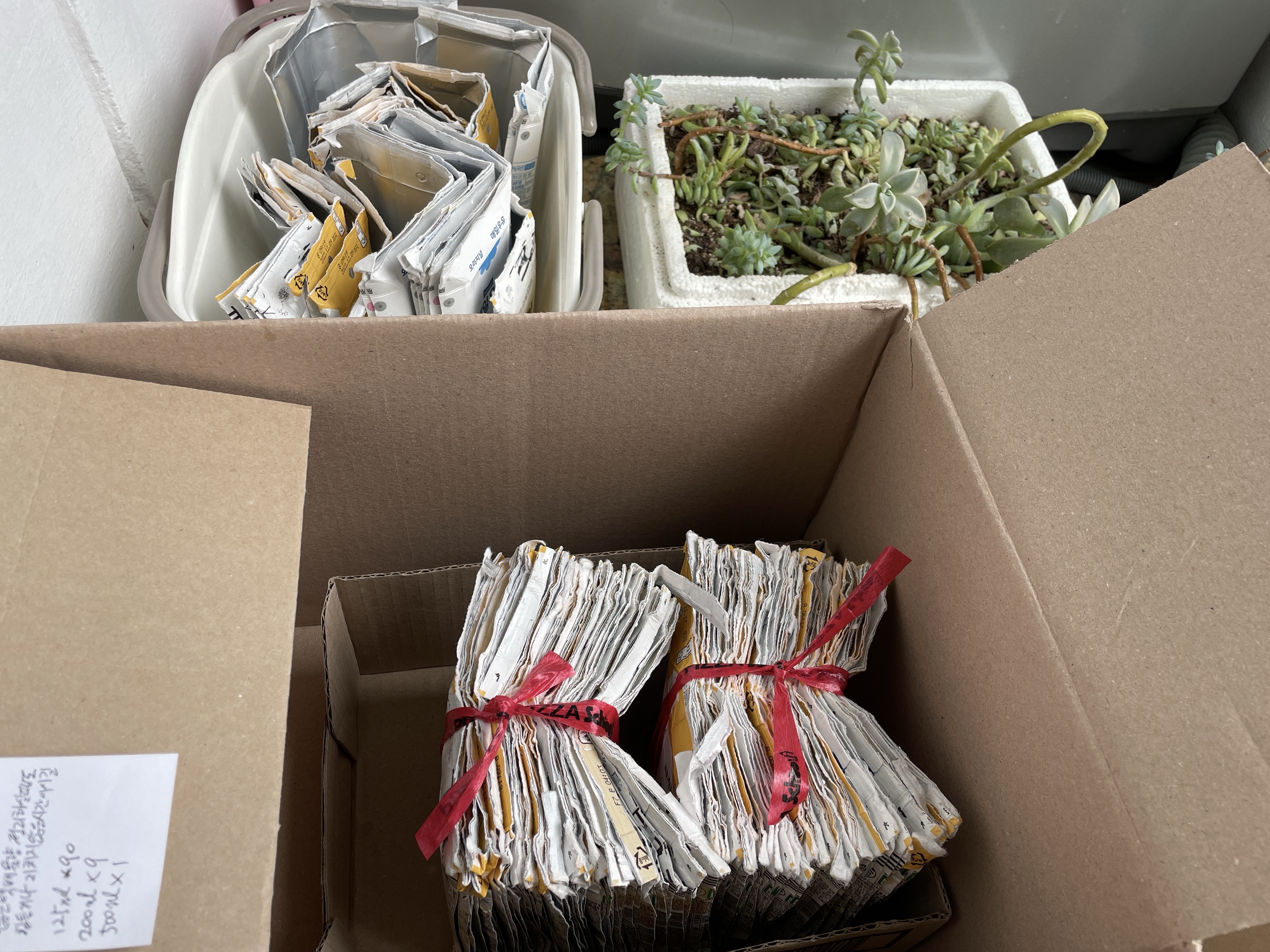 멸균 우유팩을 주로 모아서 100개가