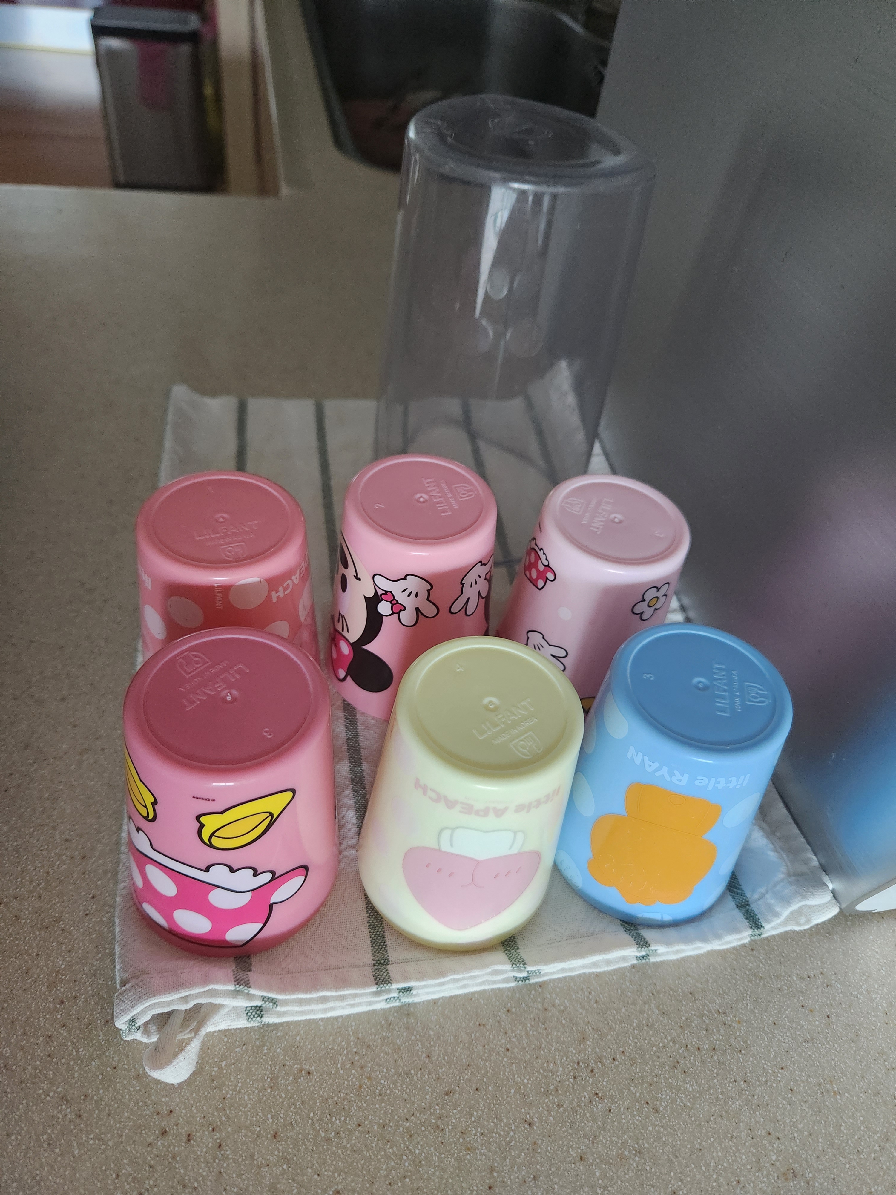 아이가 물을 쉽게 마시도록 정수기 옆에 늘 컵을 놓아요