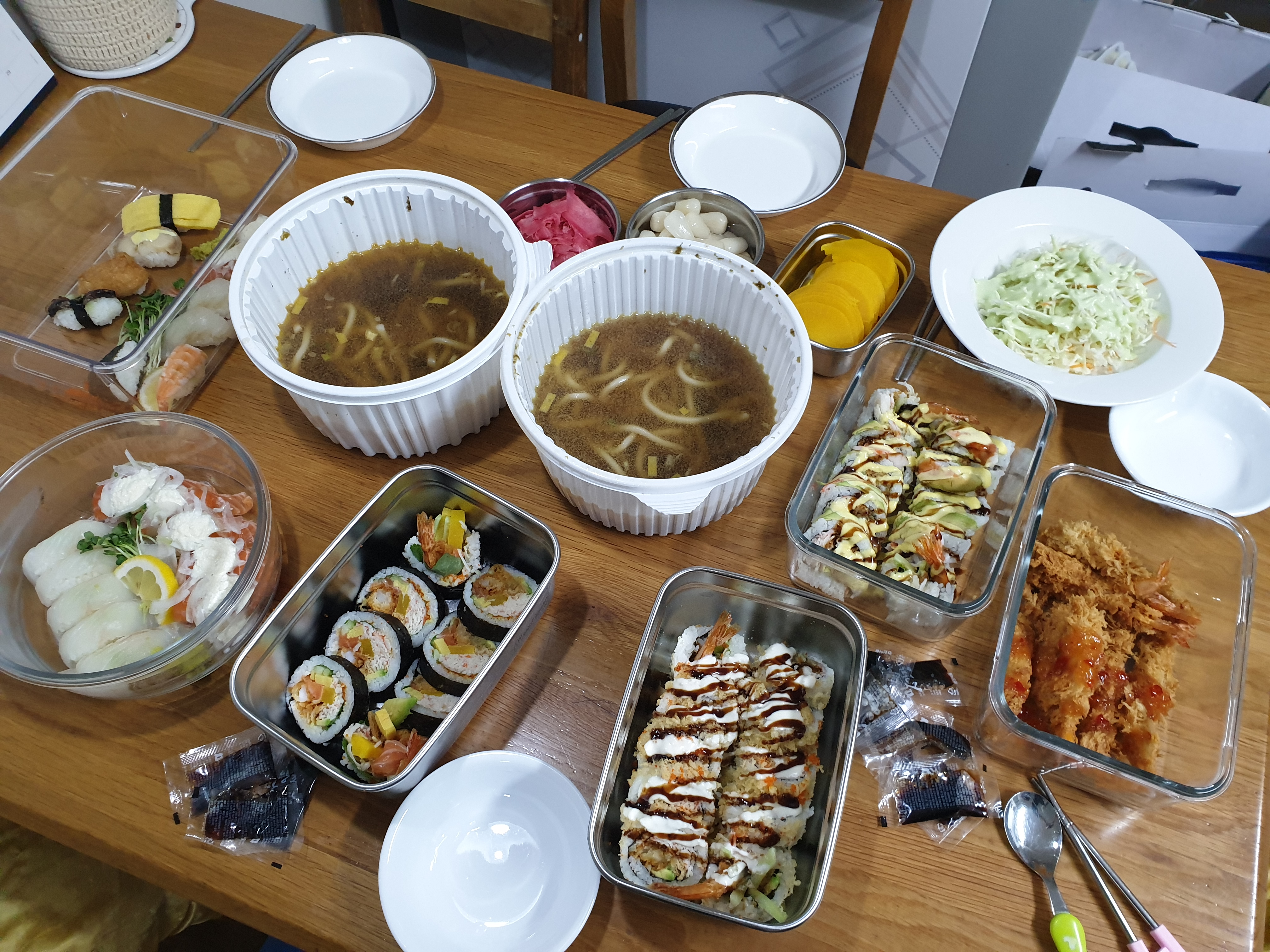 지인들과 식사하는 자리에서 포장 음식에 쓰이는 플라스틱 용기 최소화하려고 집에서 그릇들을 바리바리 싸들고 가서 포장해 온 고마운 친구가 있어요. 서로 뜻을 같이하고 마음을 같이하기에 더욱 좋은 식사 시간을 보냈습니다.