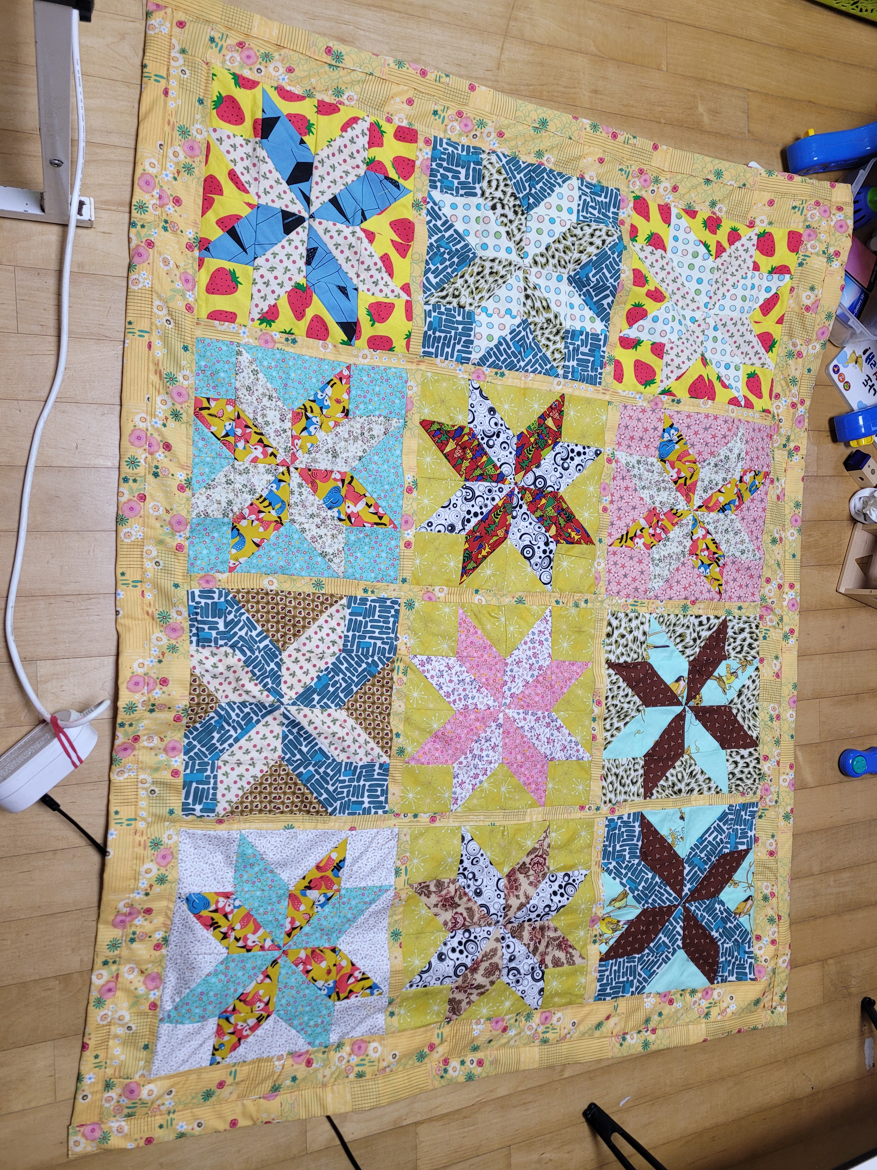 자투리원단이 많아서 퀼트로 이어붙여서 아기이불 만들었네요