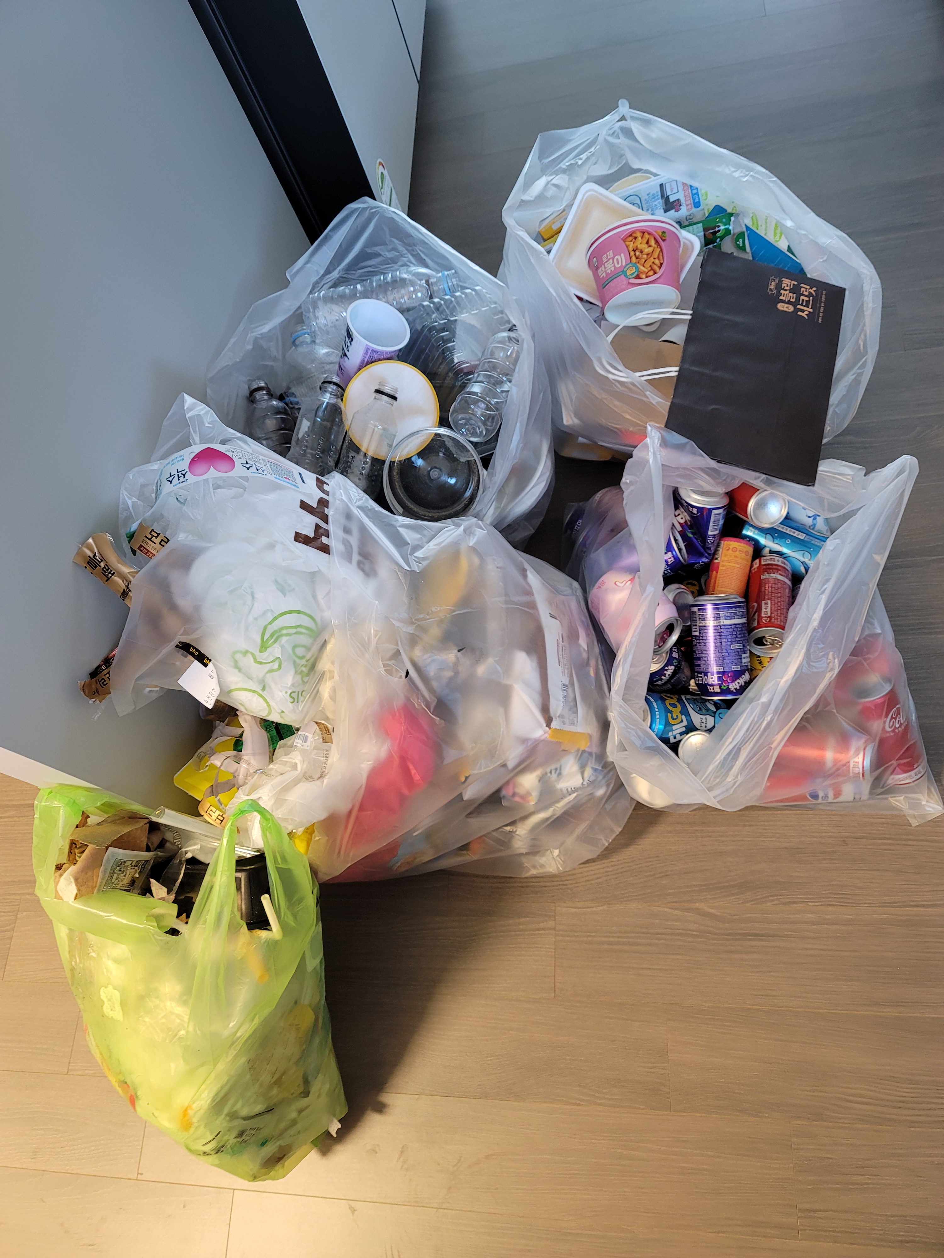 플라스틱 종이 캔 비닐 네가지가 많이나오네요