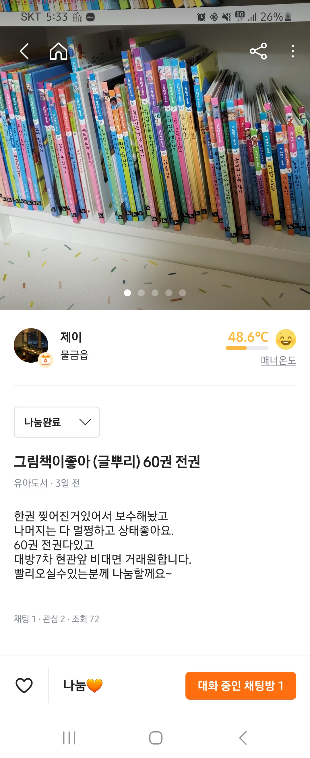 나눔으로 받은책인데 애기가 잘안읽어서 재나눔했어요~