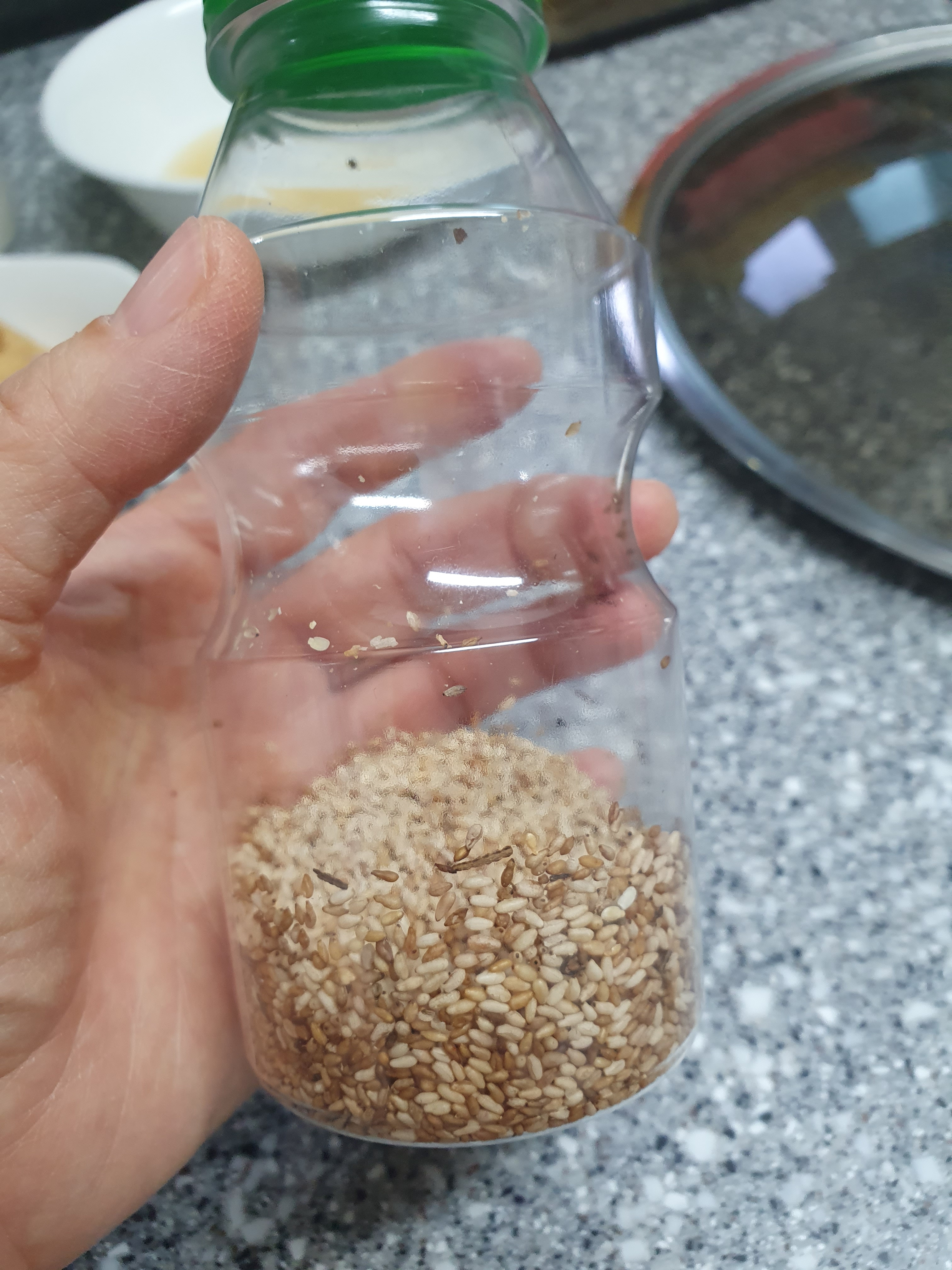 음료 페트병 잘 씻어서 말려 두었다가 참깨통으로 활용합니다^^