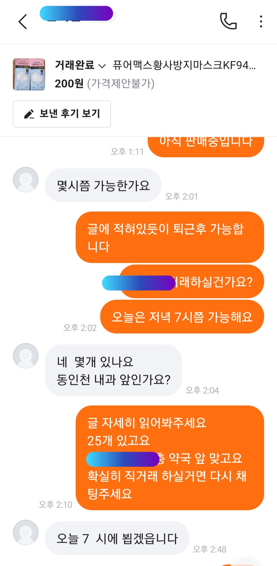 황사마스크 거래