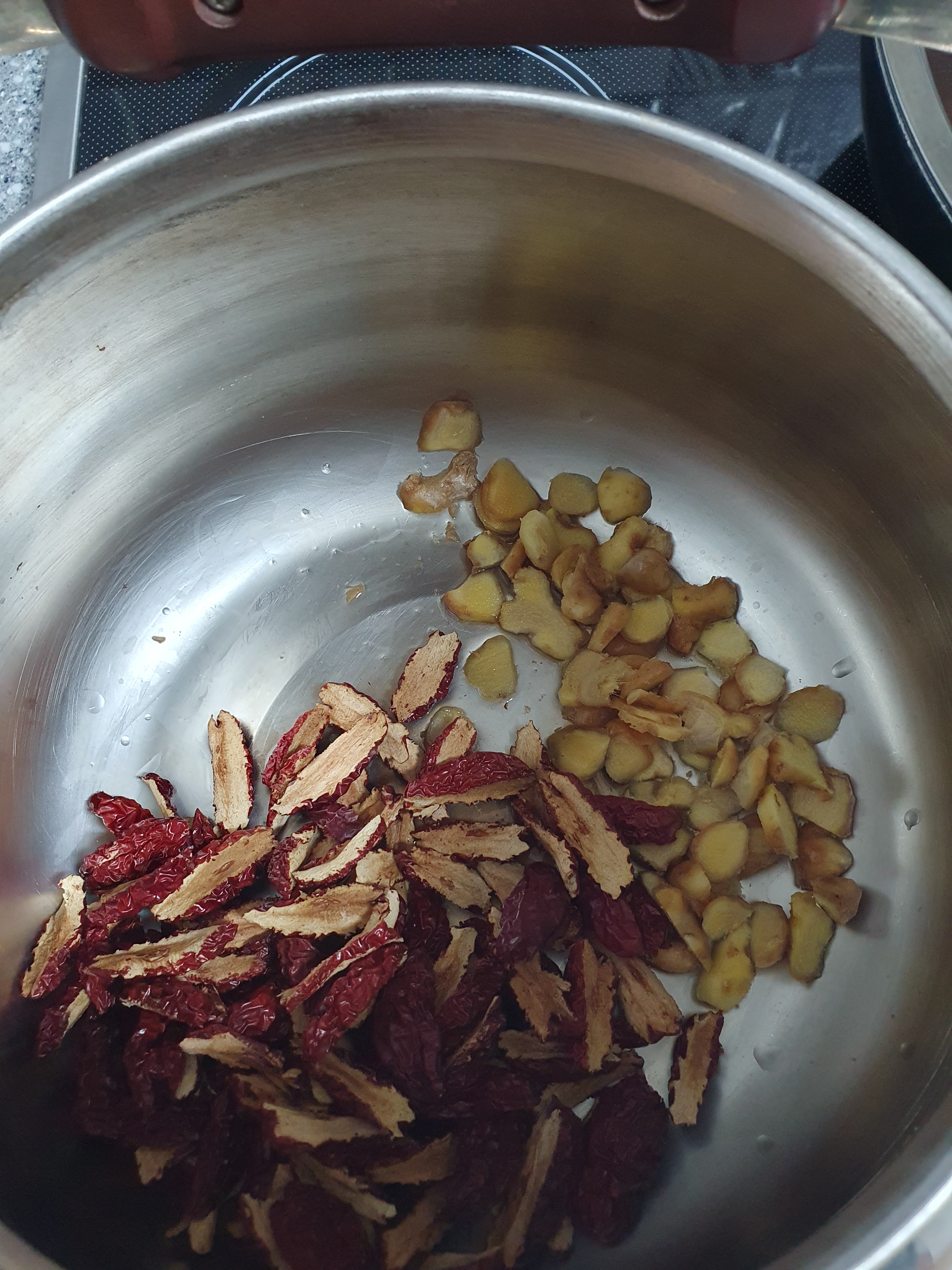 생강 씻어서 편썰고 대추 씨 빼고..