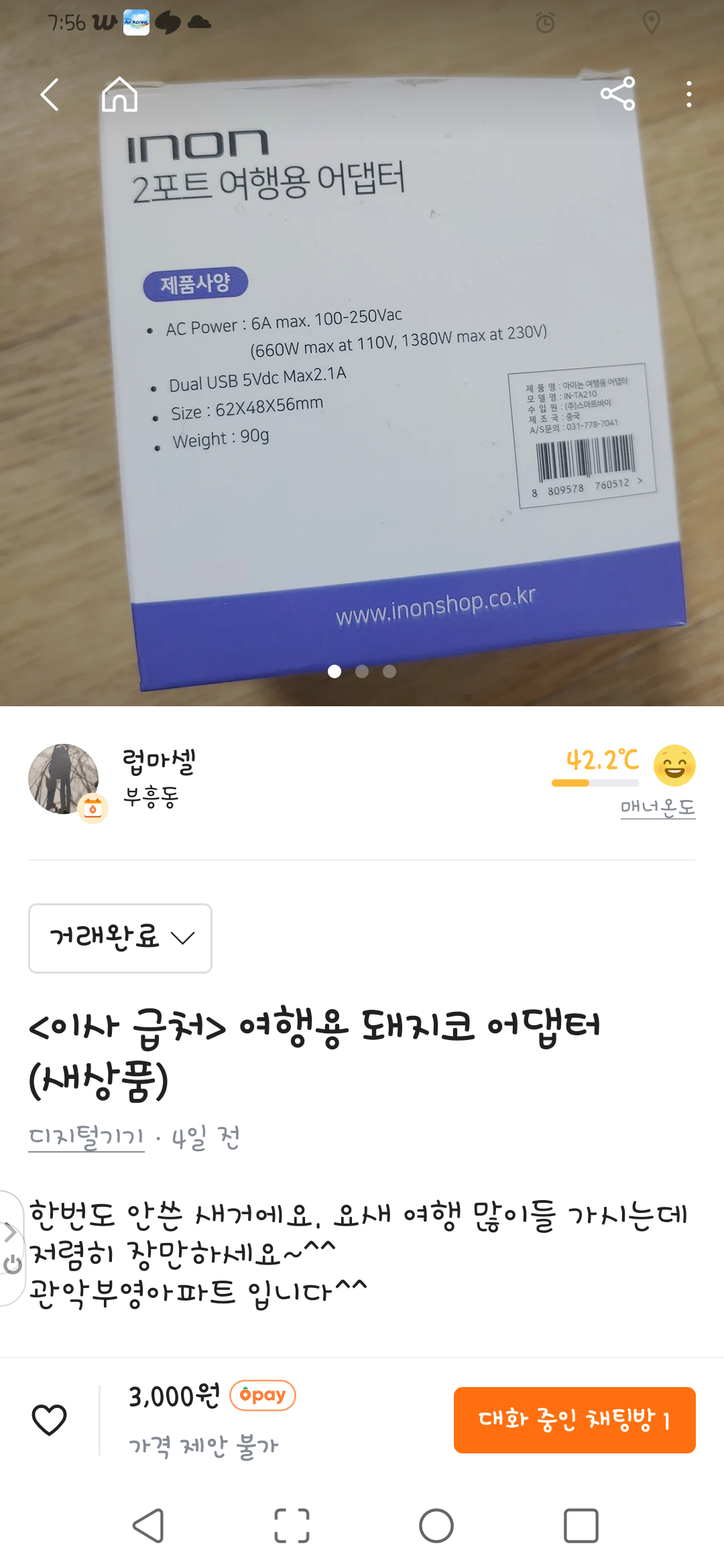 여행용 어댑터 당근거래 했어요