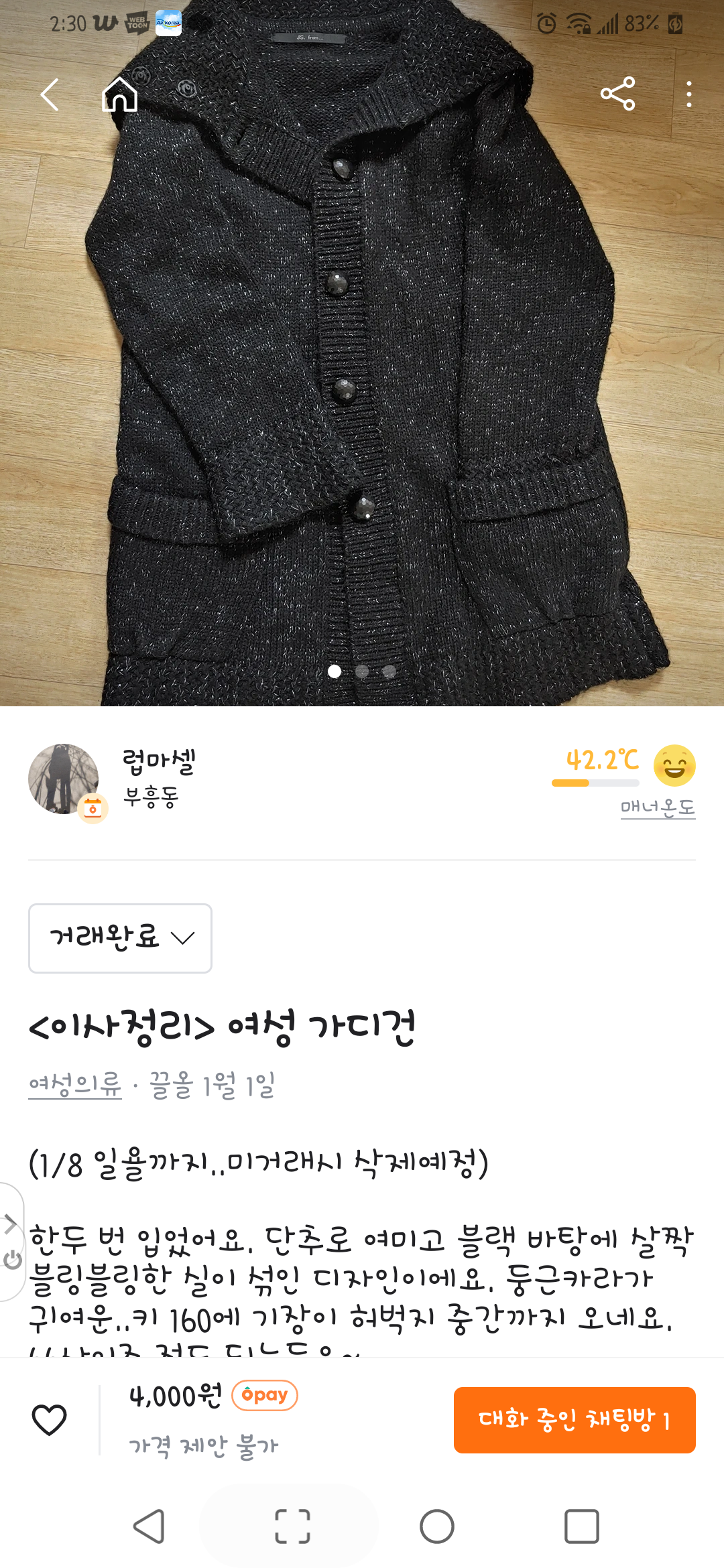 가디건 당근거래 했어요