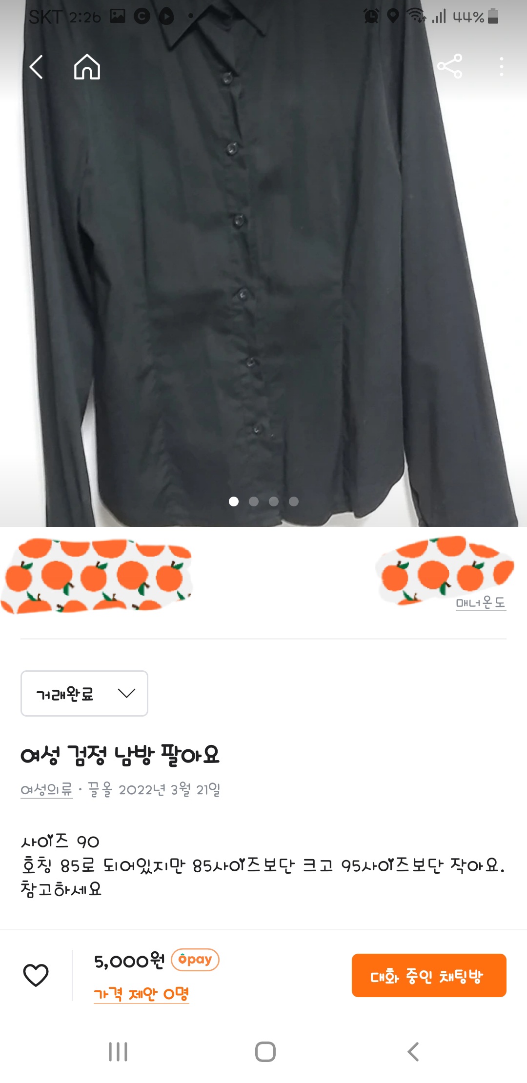 여자 검정 남방 중고거래 판매완료 인증