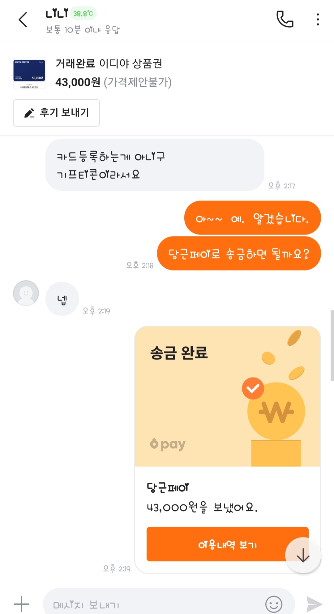 이디야 기프티콘 중고거래 구매 인증