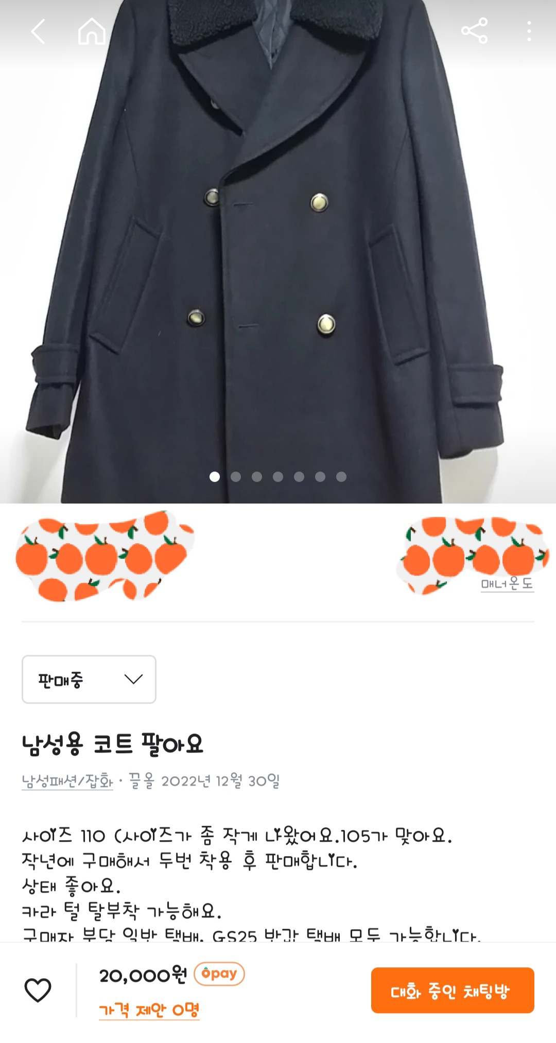 남성용 반코트 중고거래 판매