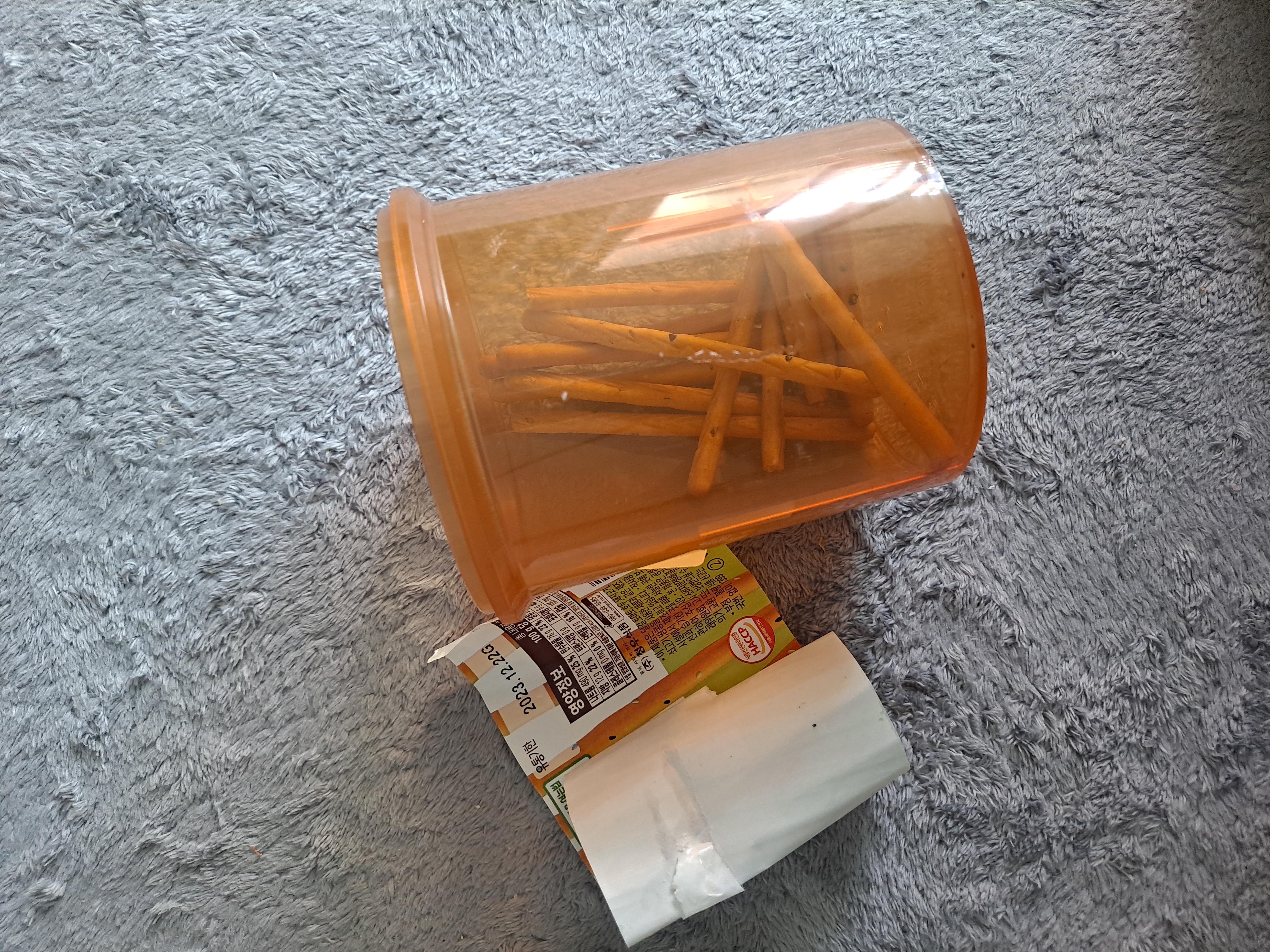 과자먹으면서 스티커제거하기