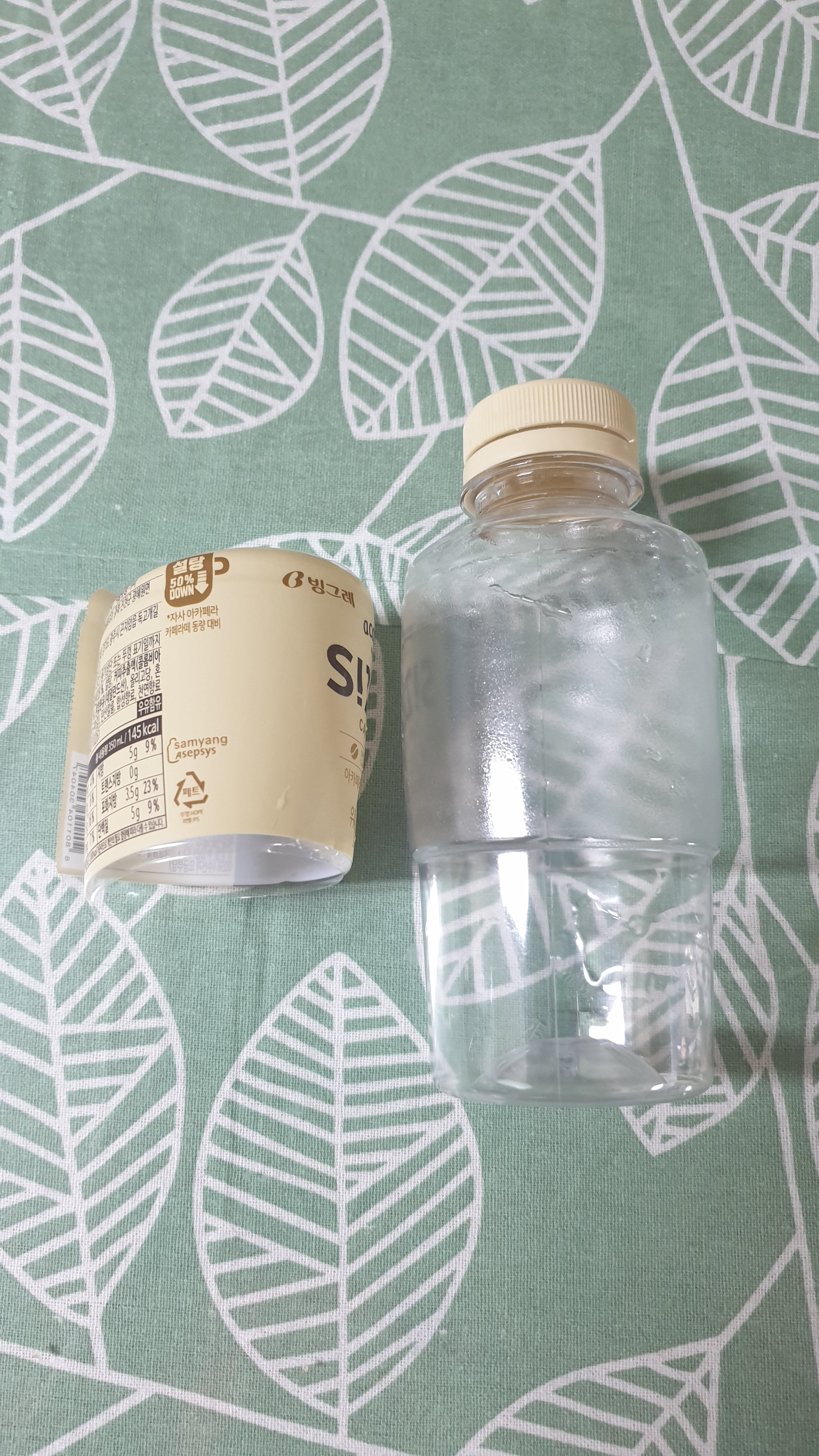 커피마시고 페트병 라벨 제거 완료!!