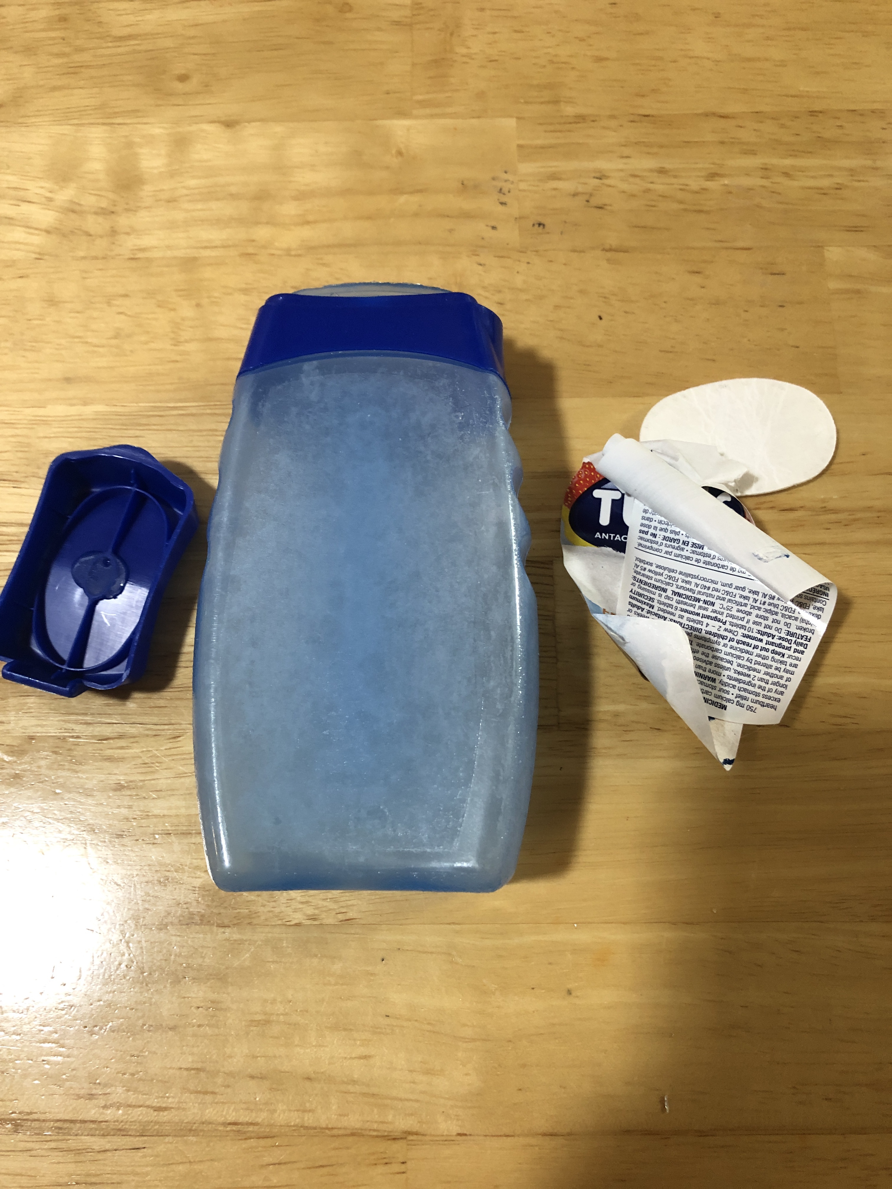 3년 전에 캐나다에서 귀국할 때 Tums라는 제산제를 사서 들어왔는데 유통기한이 지나서 약은 다른 폐기된 약들과 함께 지퍼백에 넣어 두었고, 약병은 스티커를 모두 헤어드라이어로 열을 가해서 깨끗하게 떼어내어 분리하였습니다.