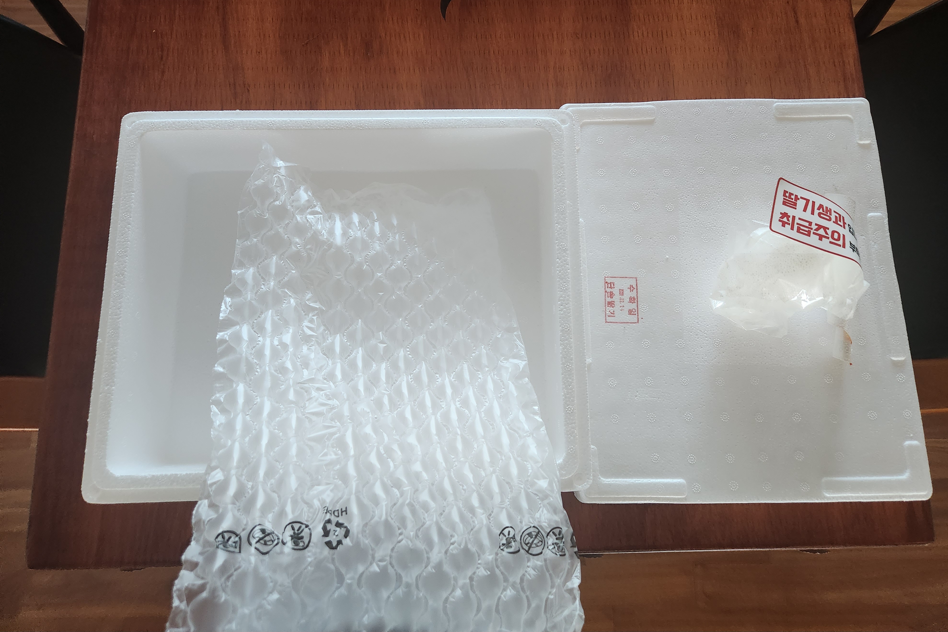 택배 스티로폼박스 라벨과 테이프 제거