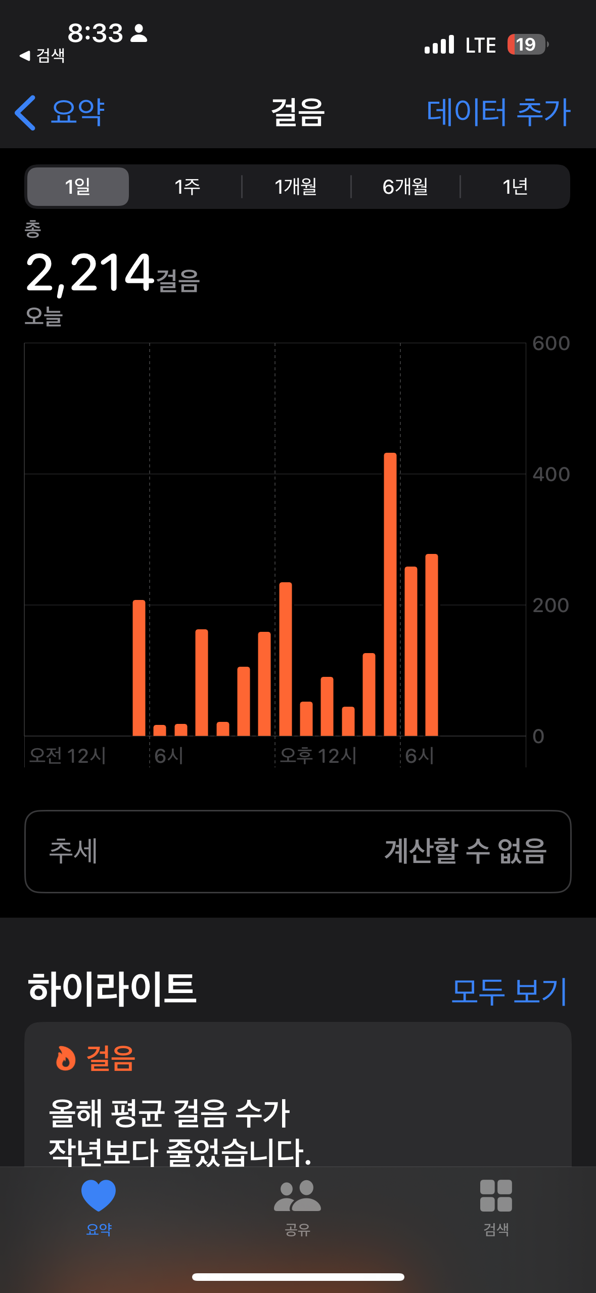 오늘도 2000걸음 이상 걸었다.