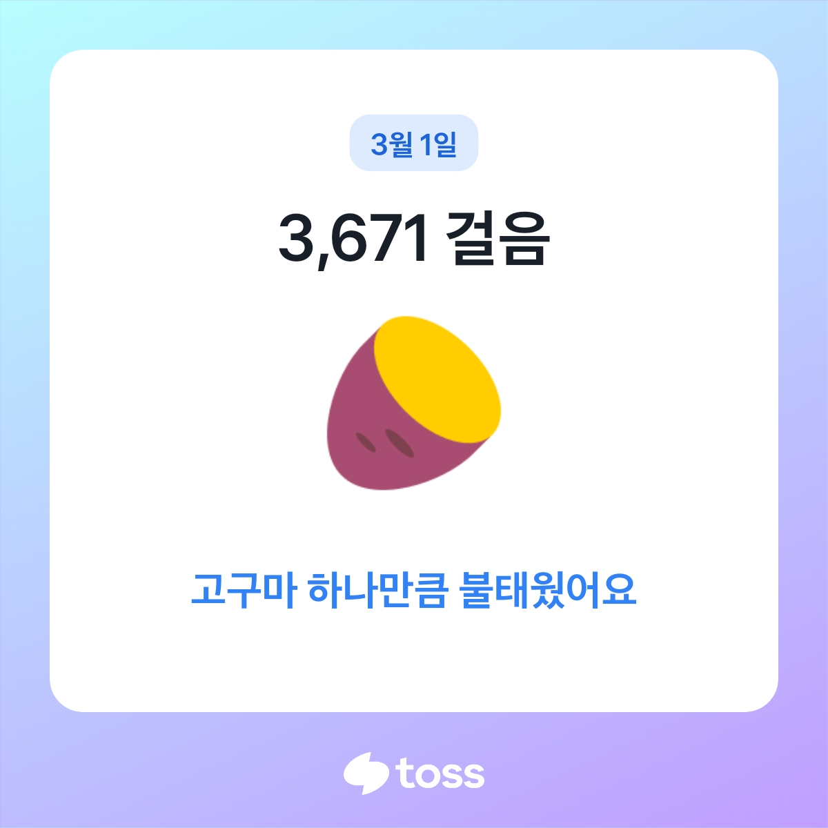 오늘은 걸어서 고구마 한개만큼 태웠다네요