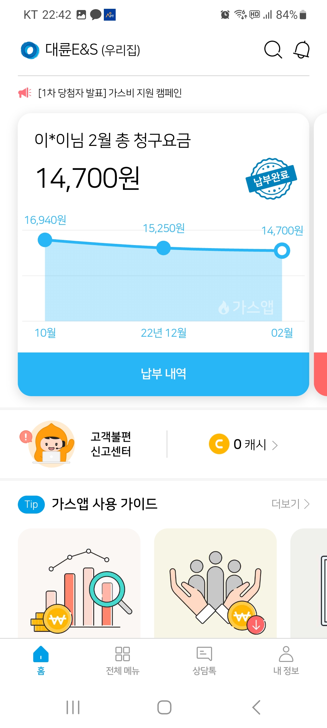 도시가스앱 설치하고 모바일청구서로 전환했어요.