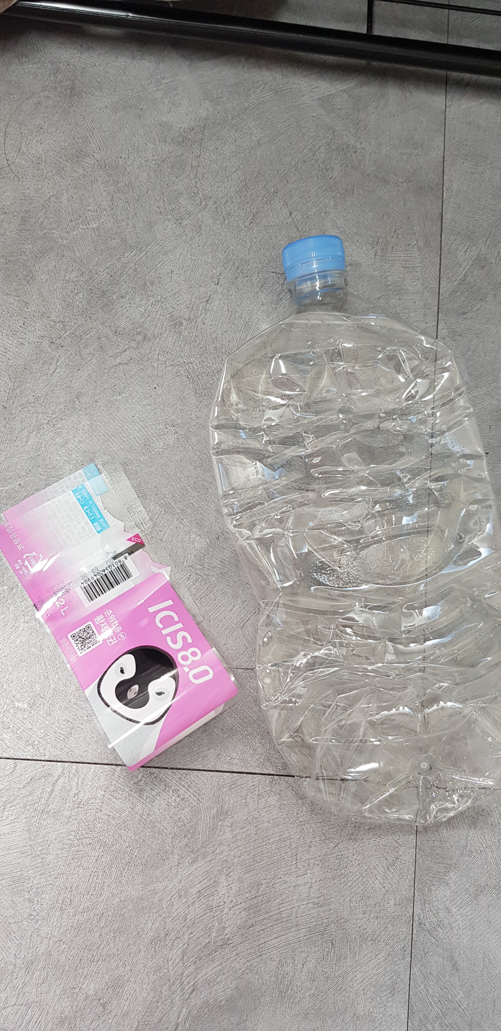 생수 및 다른 물건들 항상 상표 제거 후 분리 배출합니다