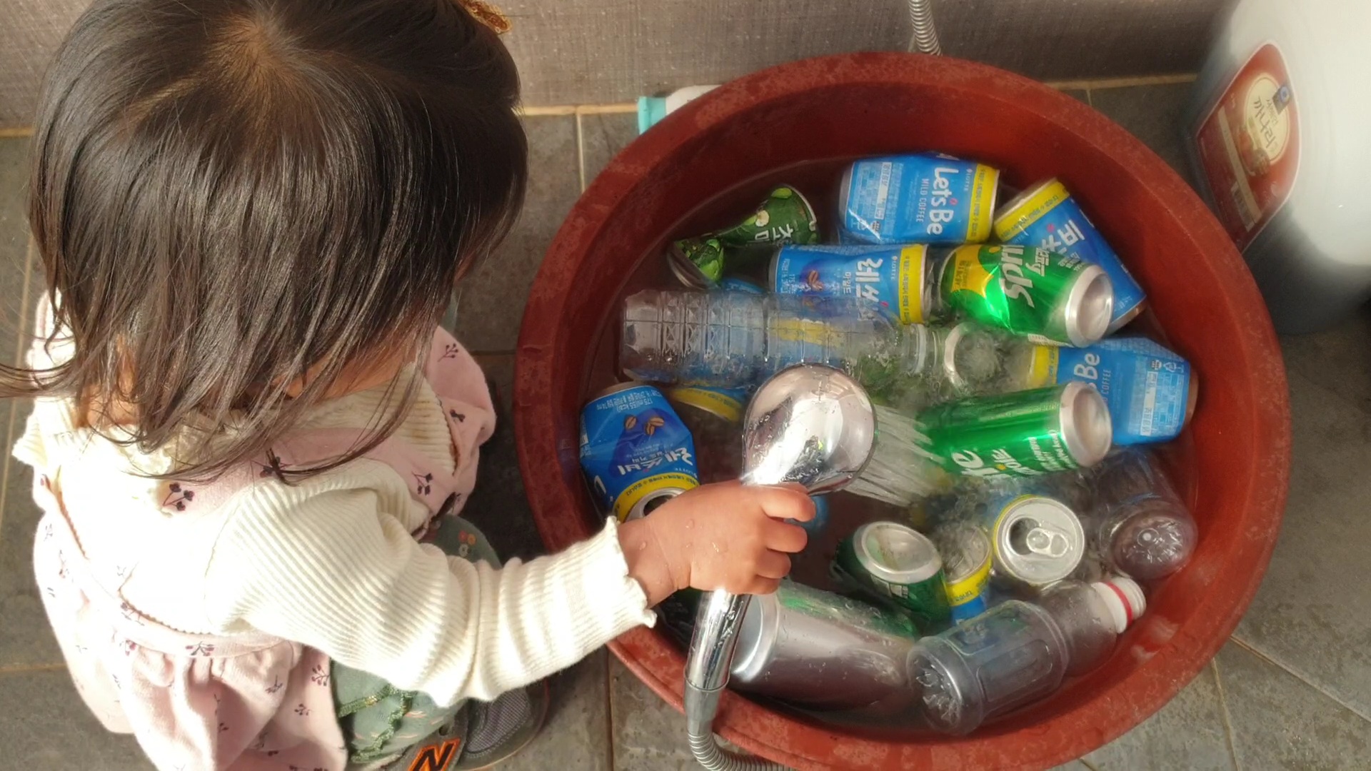 깨끗하게 씻고, 말리고 분리수거 하는거라며 직접 씻어도 봅니다.