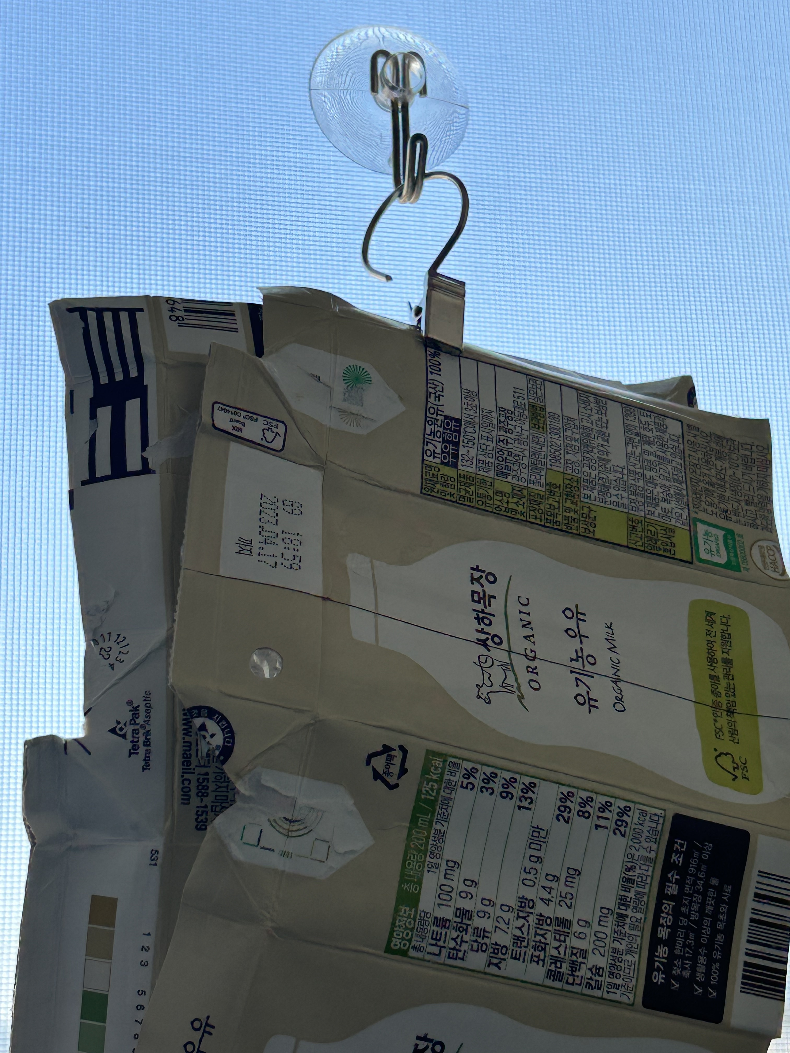 어제 아이가 먹은 팩우유 잘 씻어 말리기 !