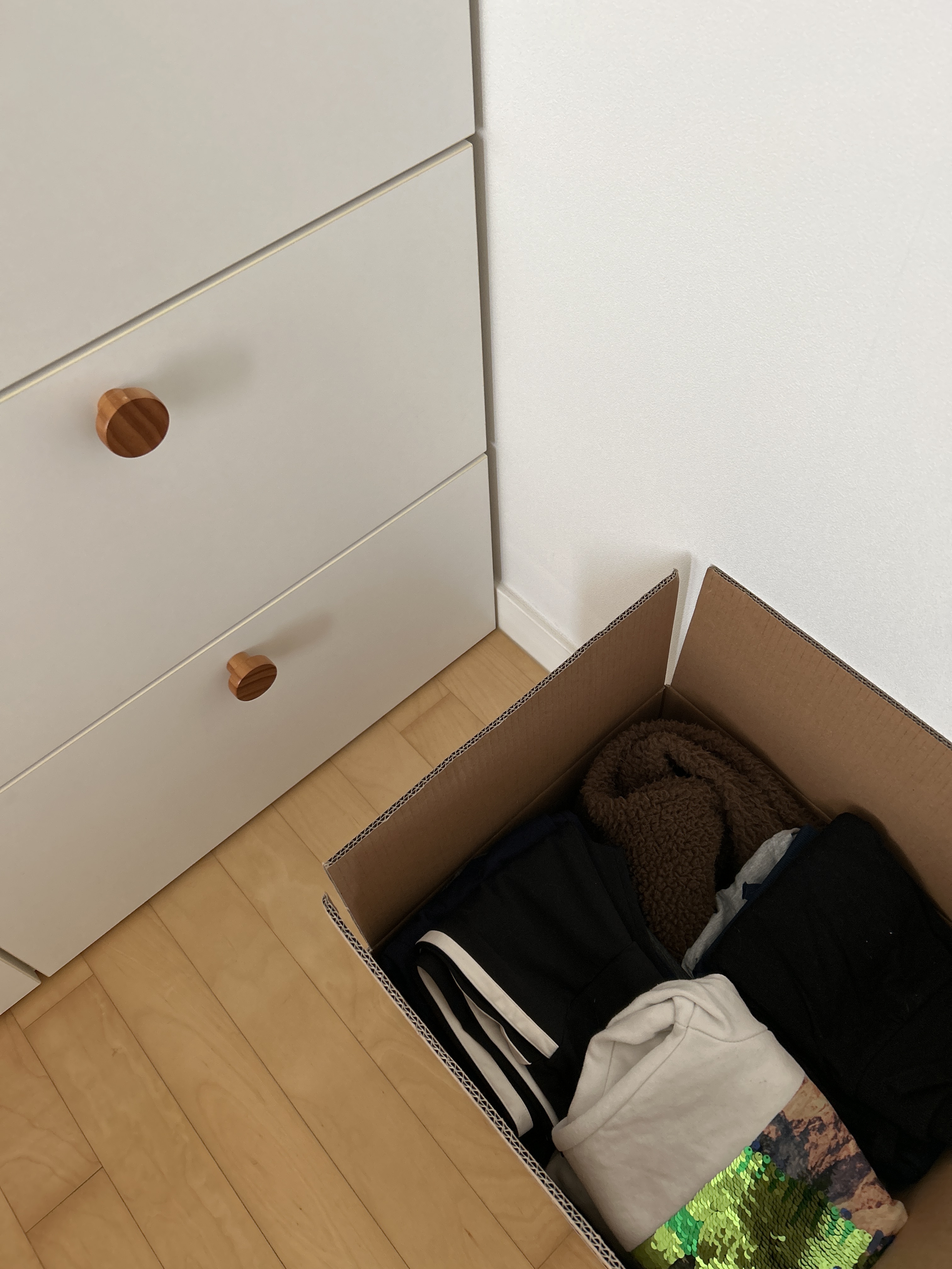 옷장앞에 박스 하나 두고 못입게 된 옷을 모으고 있어요.^^
