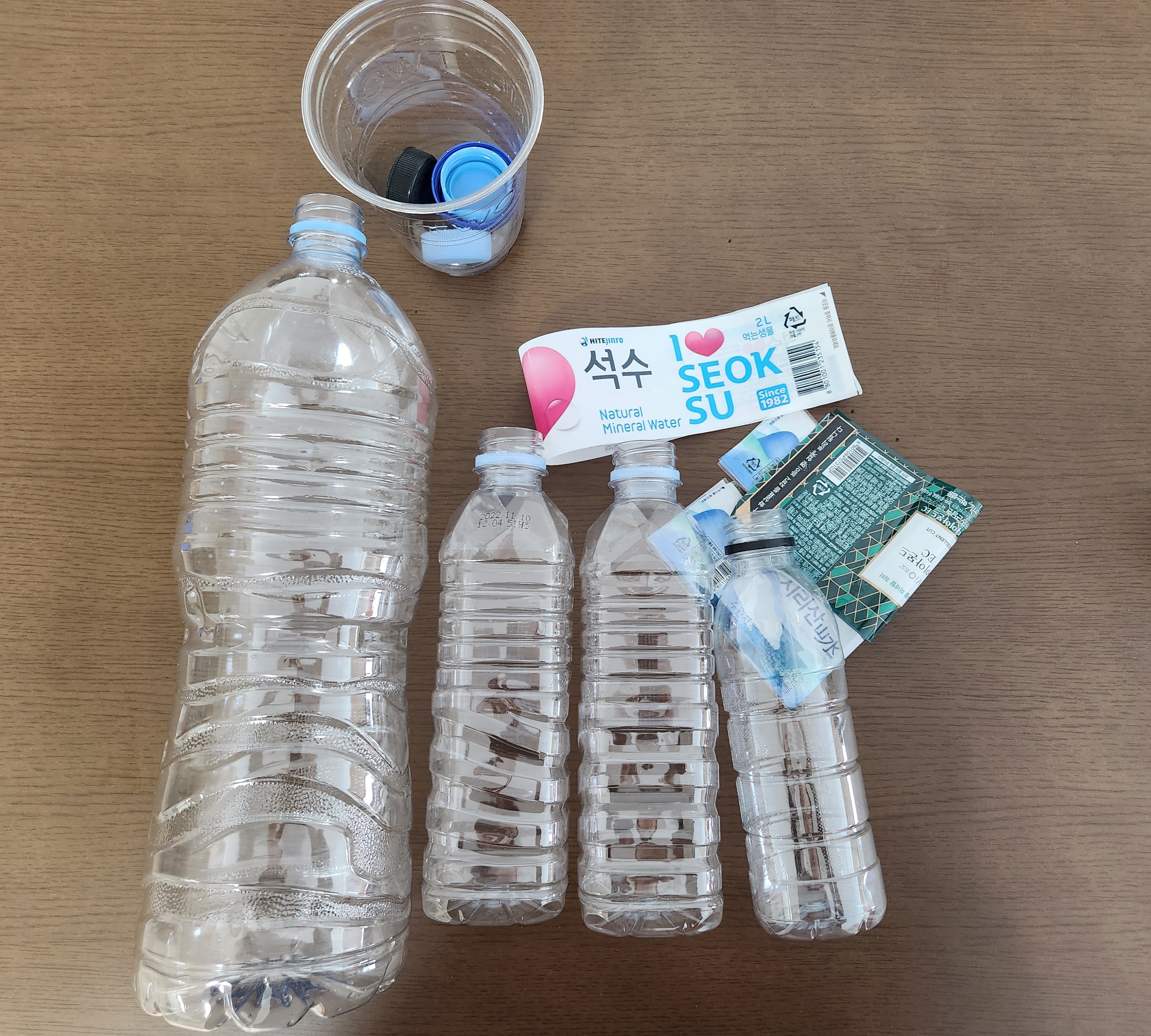 펫트병 라벨떼고 분리수거해요