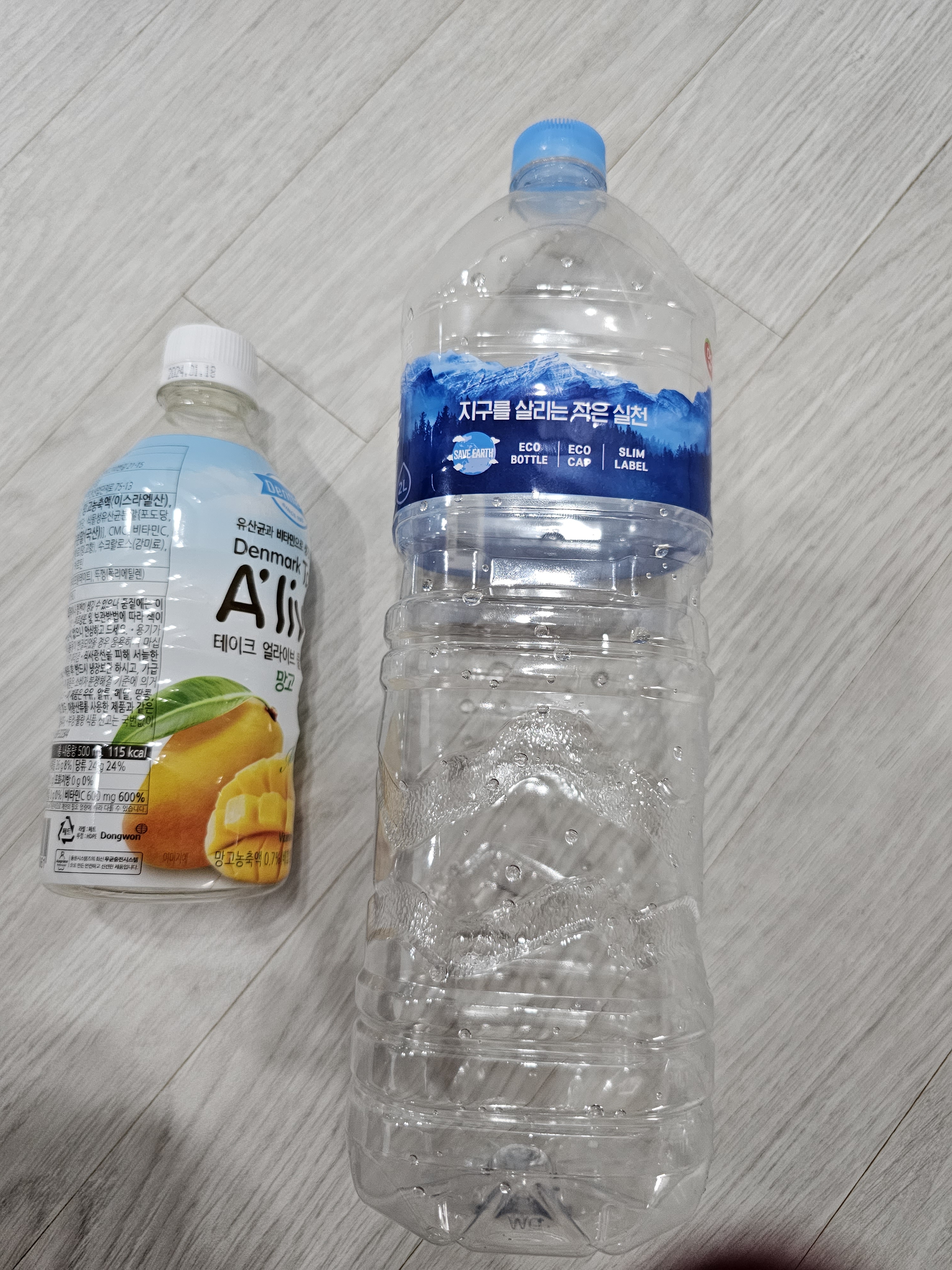 페트병 비닐 분리하고 씻어요