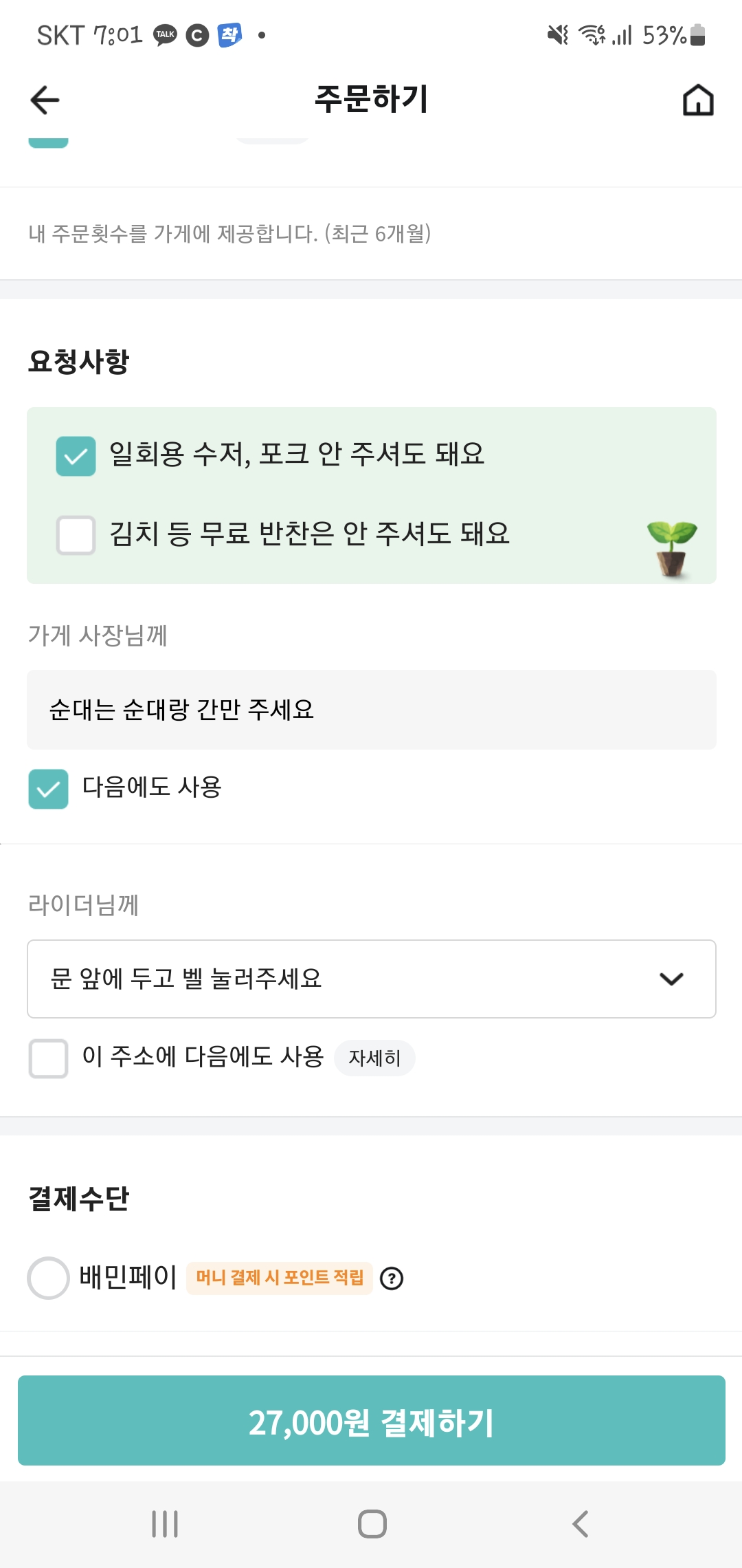 일회용 수저 ,젓가락 안받기