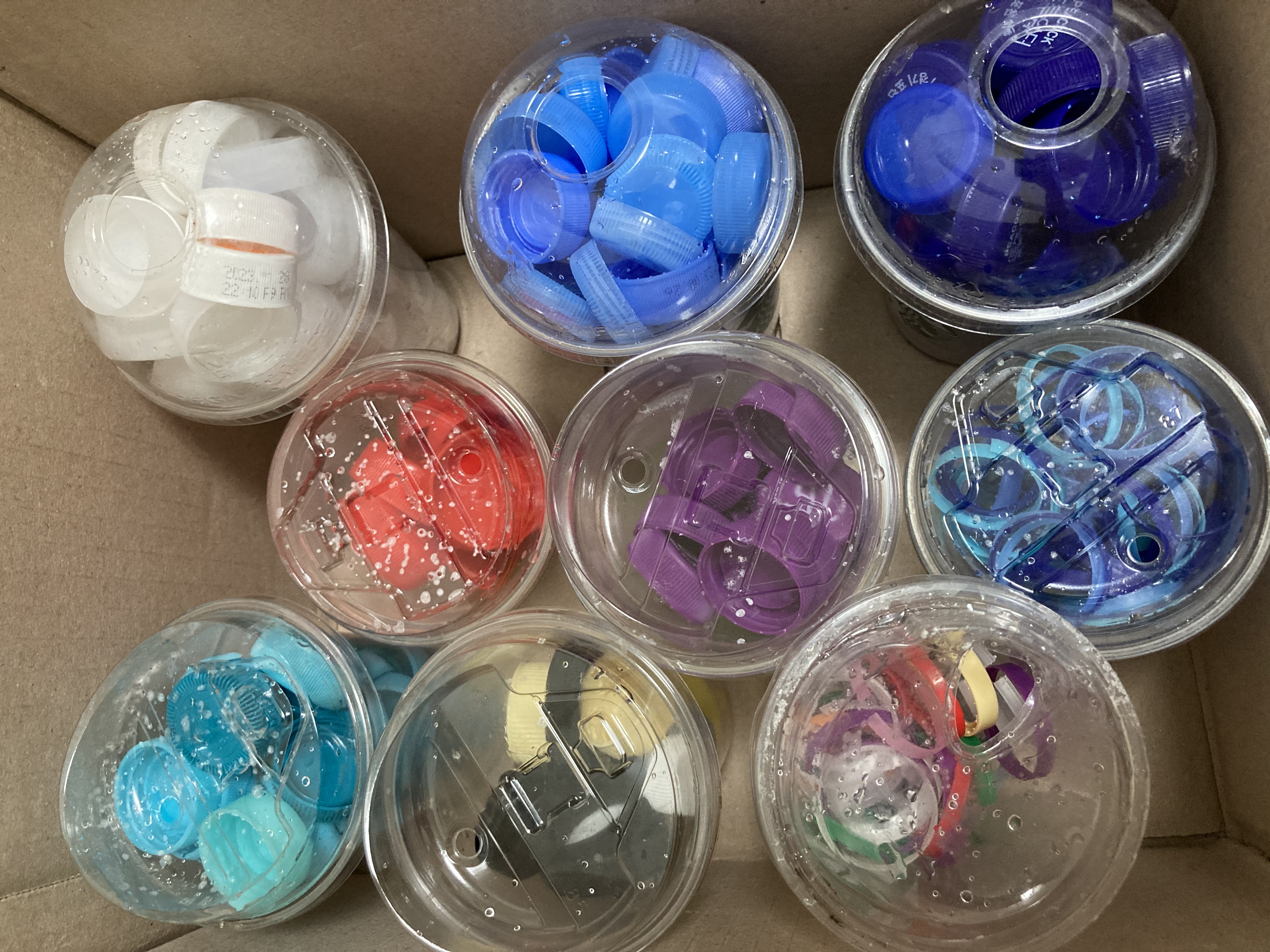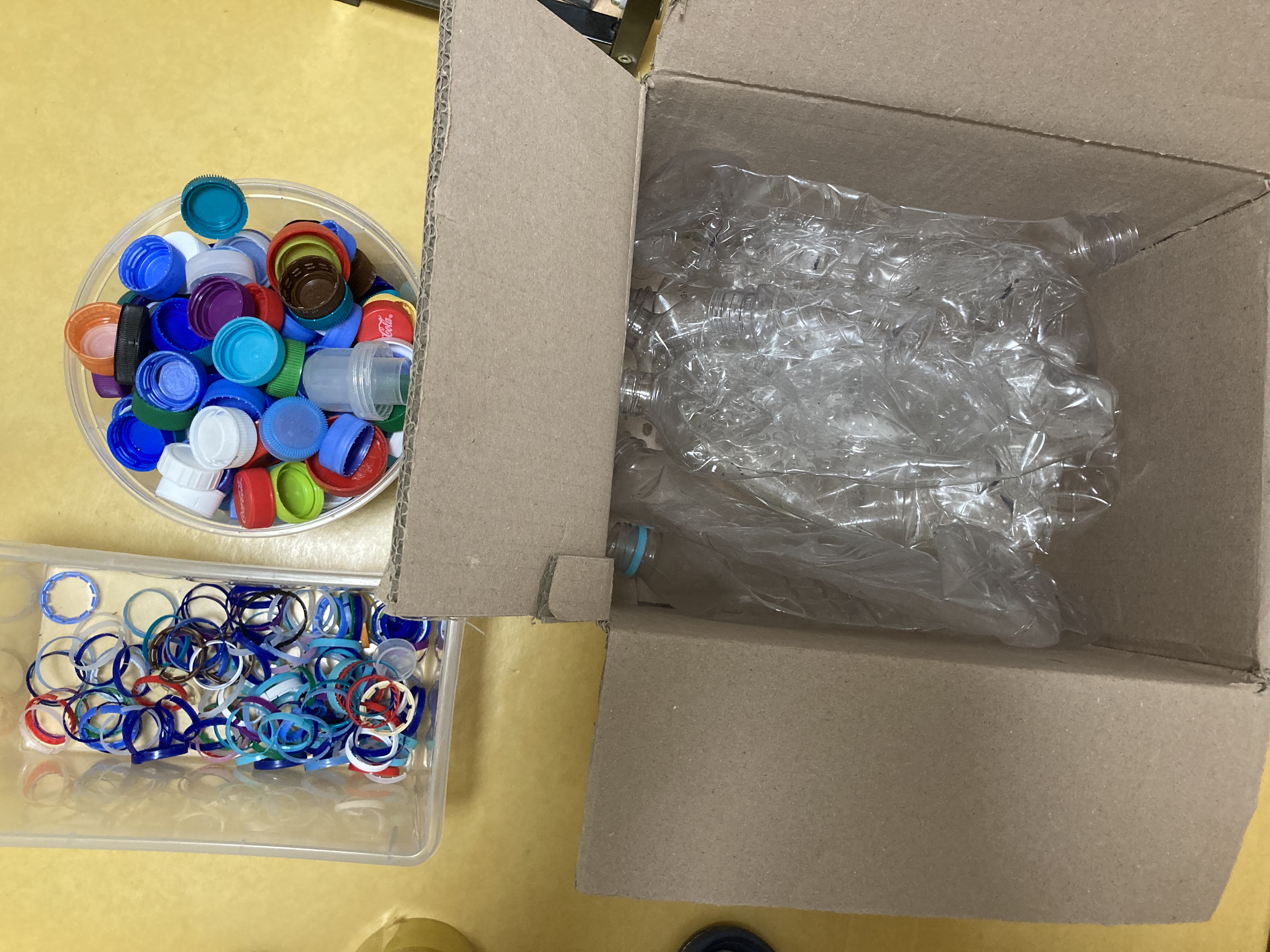 투명 플라스틱 병과 뚜껑 모아서