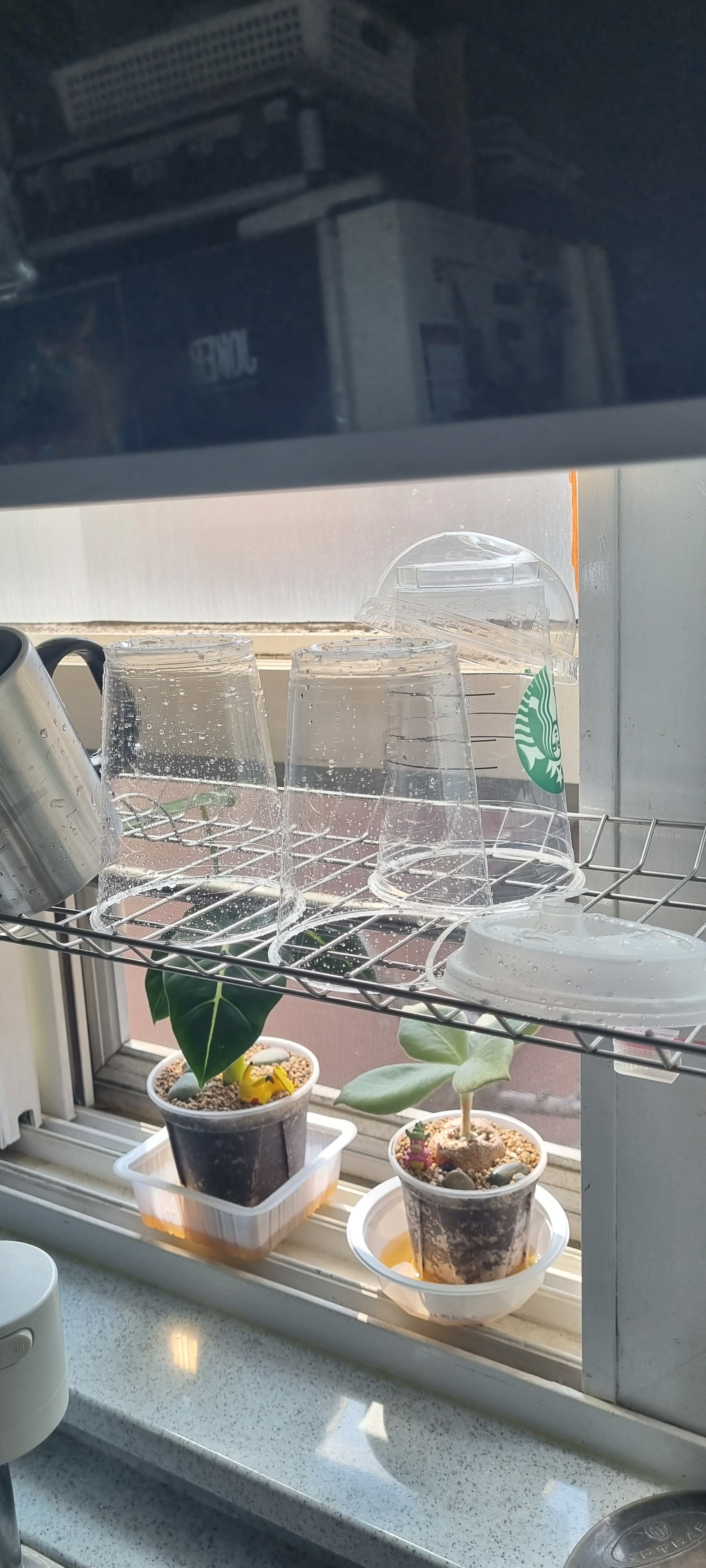 앗 식물들이 넘 귀여워요 ㅎㅎ 재활용된 화분이라 지구도 지키고 좋네요~~