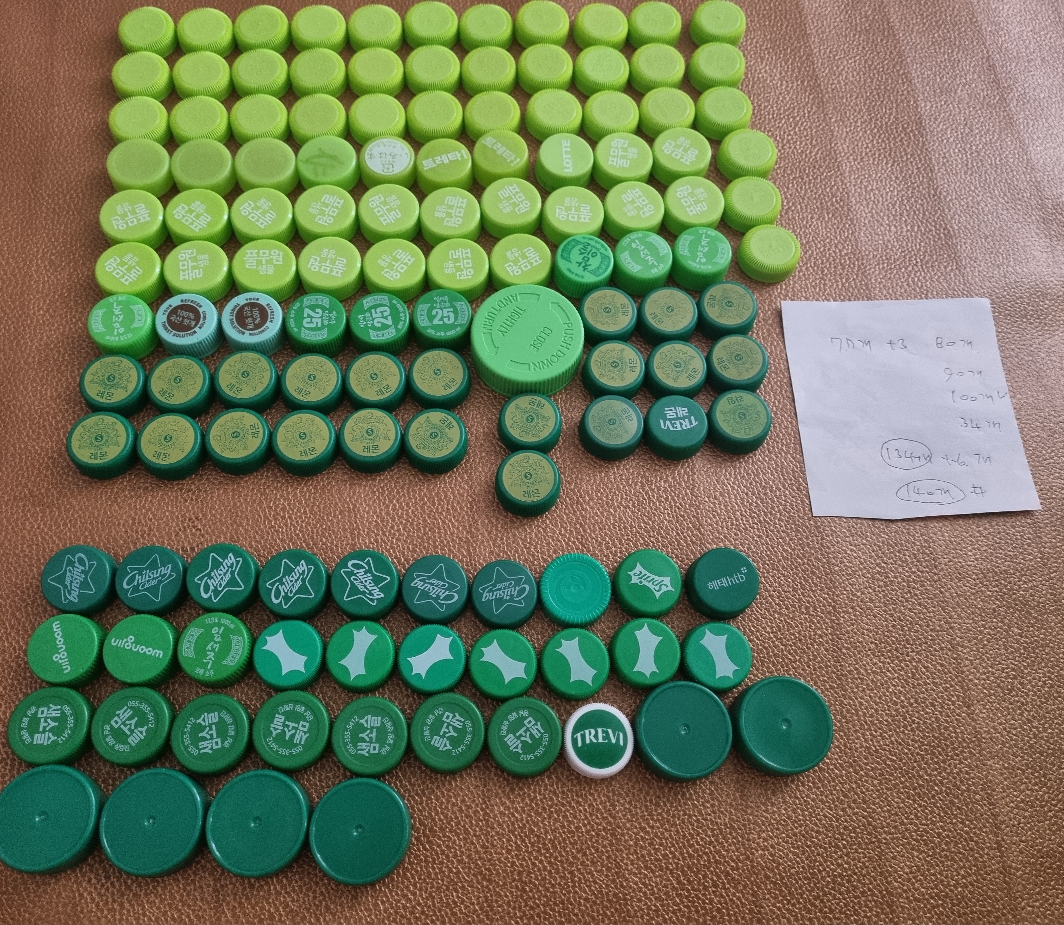 병뚜껑 색깔별로 분리작업 13번 ~ 그린