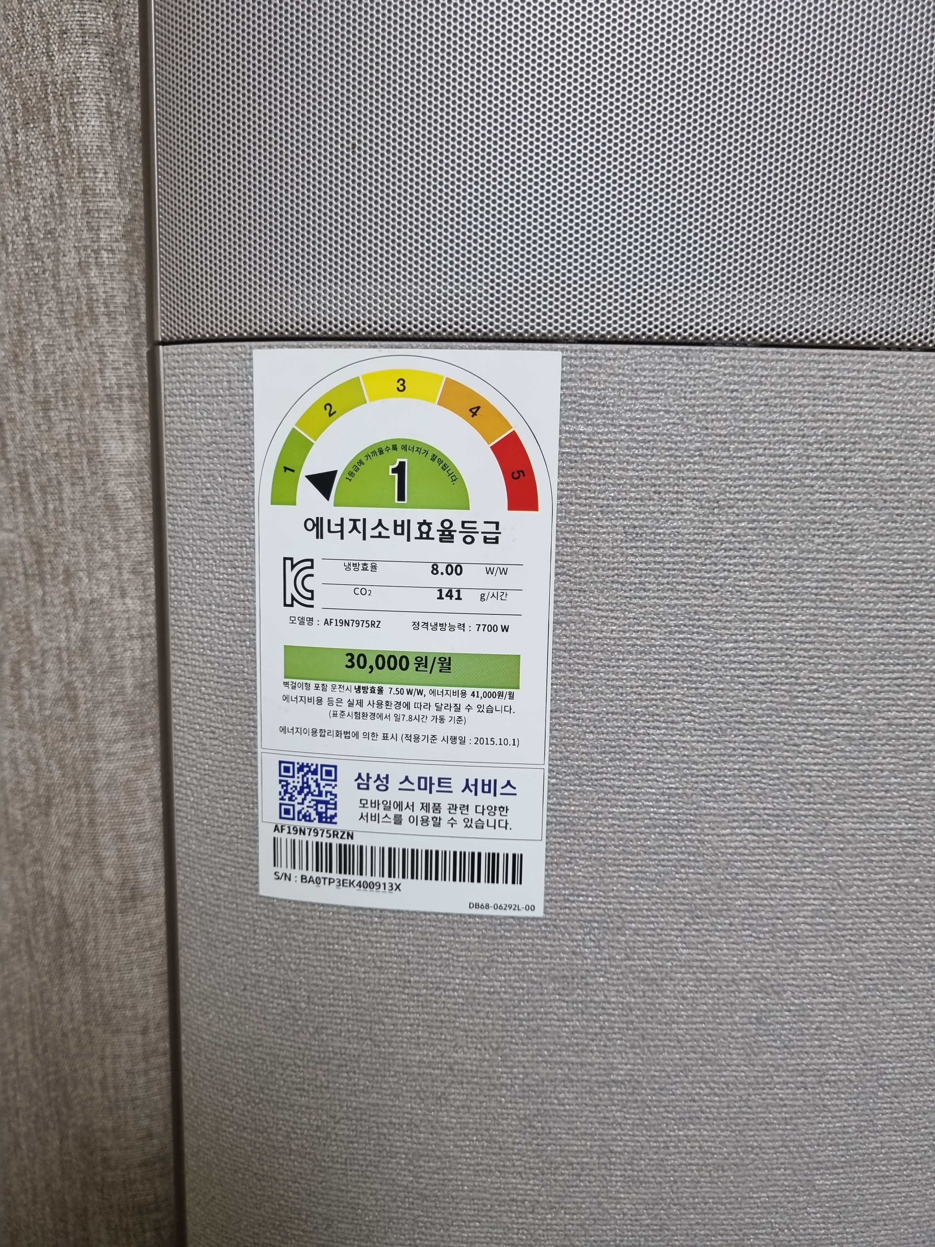 에어컨 1등급 제품 확인하고 사용합니다~
