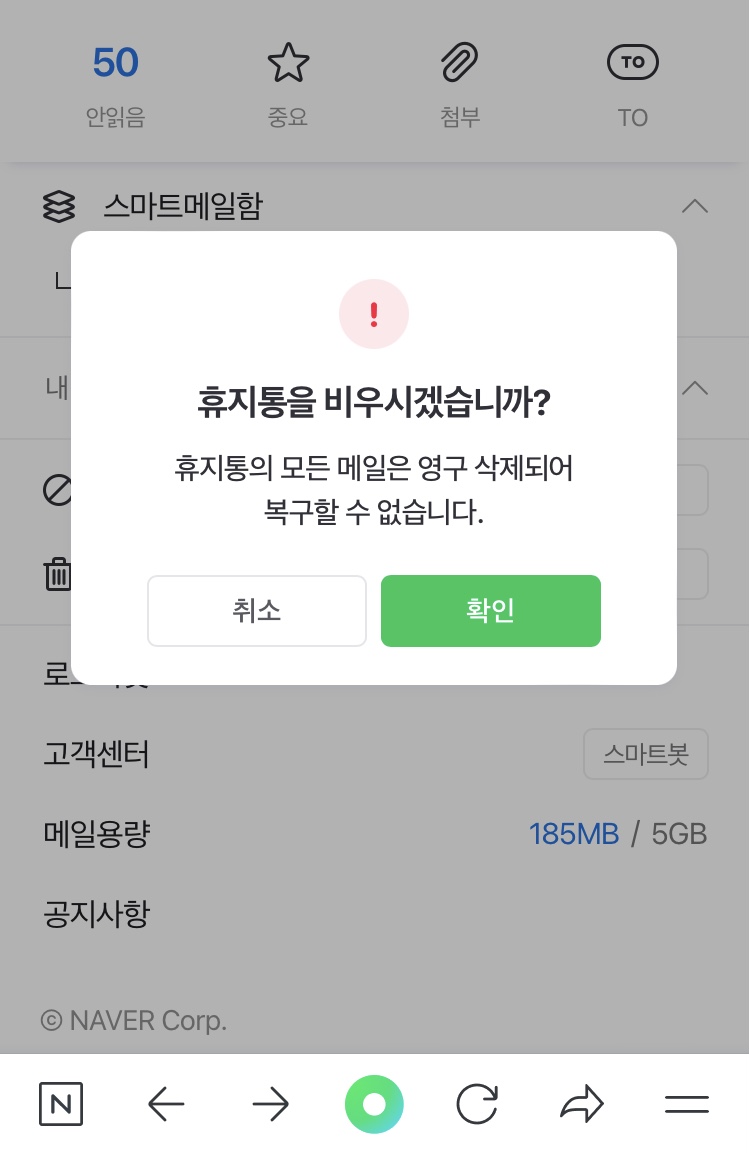 메일 확인 후 휴지통을 비워요