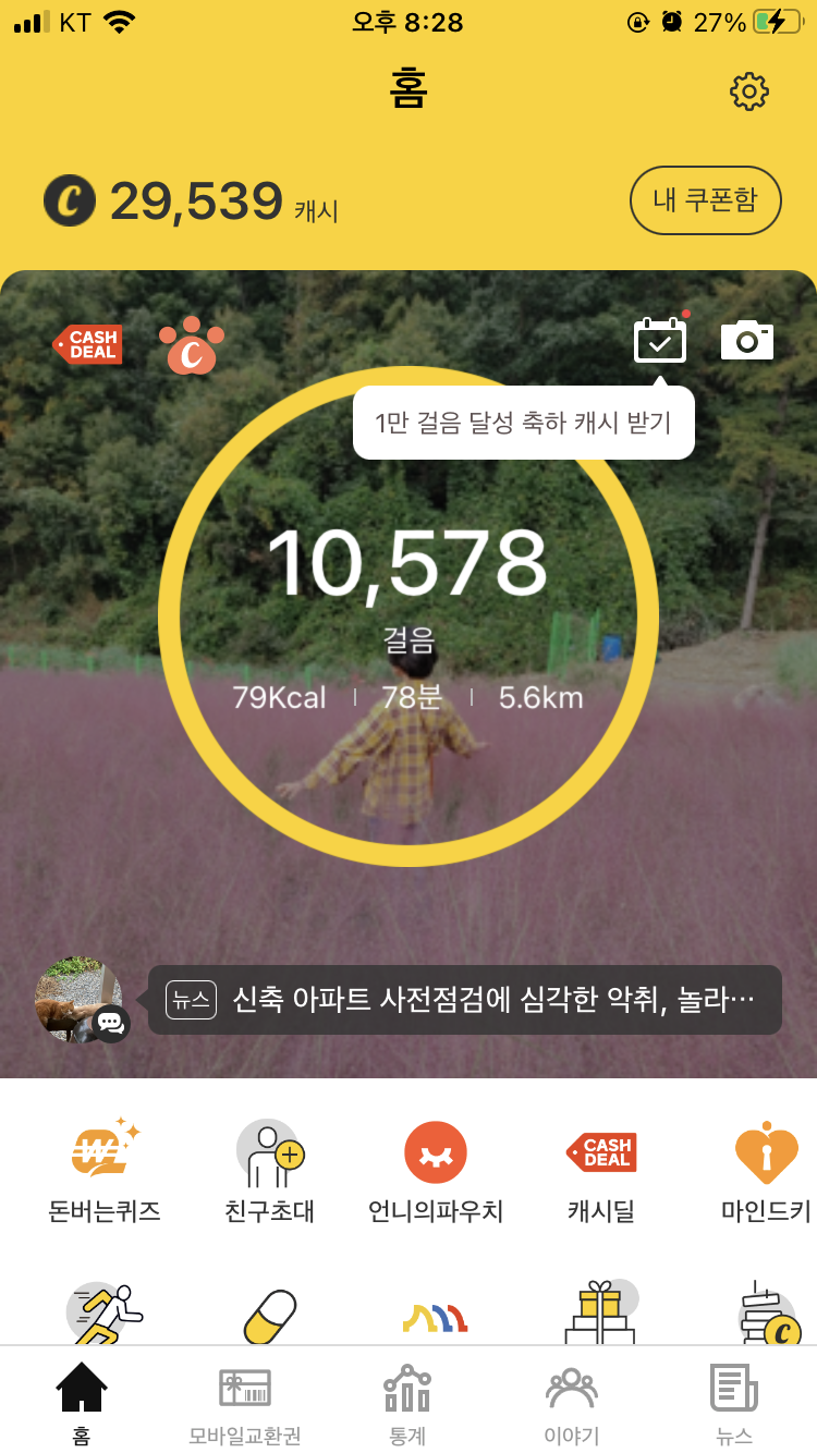 오늘 만보가 넘었어요