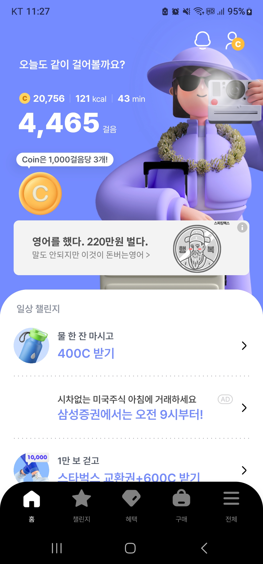챌린지 적합도가 부족한 경우 비전시 (본인만 보임) 및 적립되지 않을 수 있습니다.