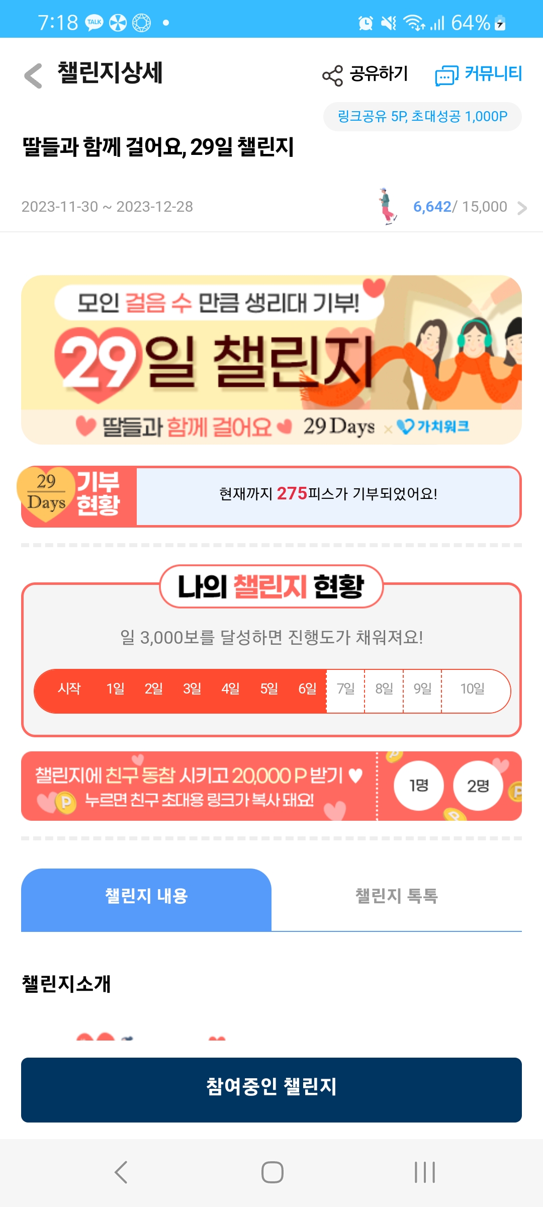 챌린지 적합도가 부족한 경우 비전시(본인만 보임) 및 적립이 되지 않을 수 있습니다.