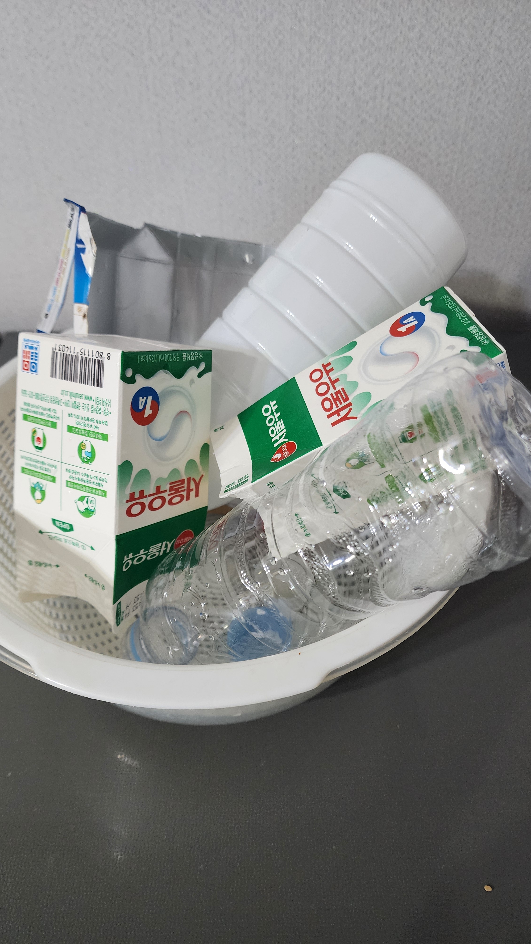 팩과 음료수병을 깨끗하게 씻어서 말립니다.