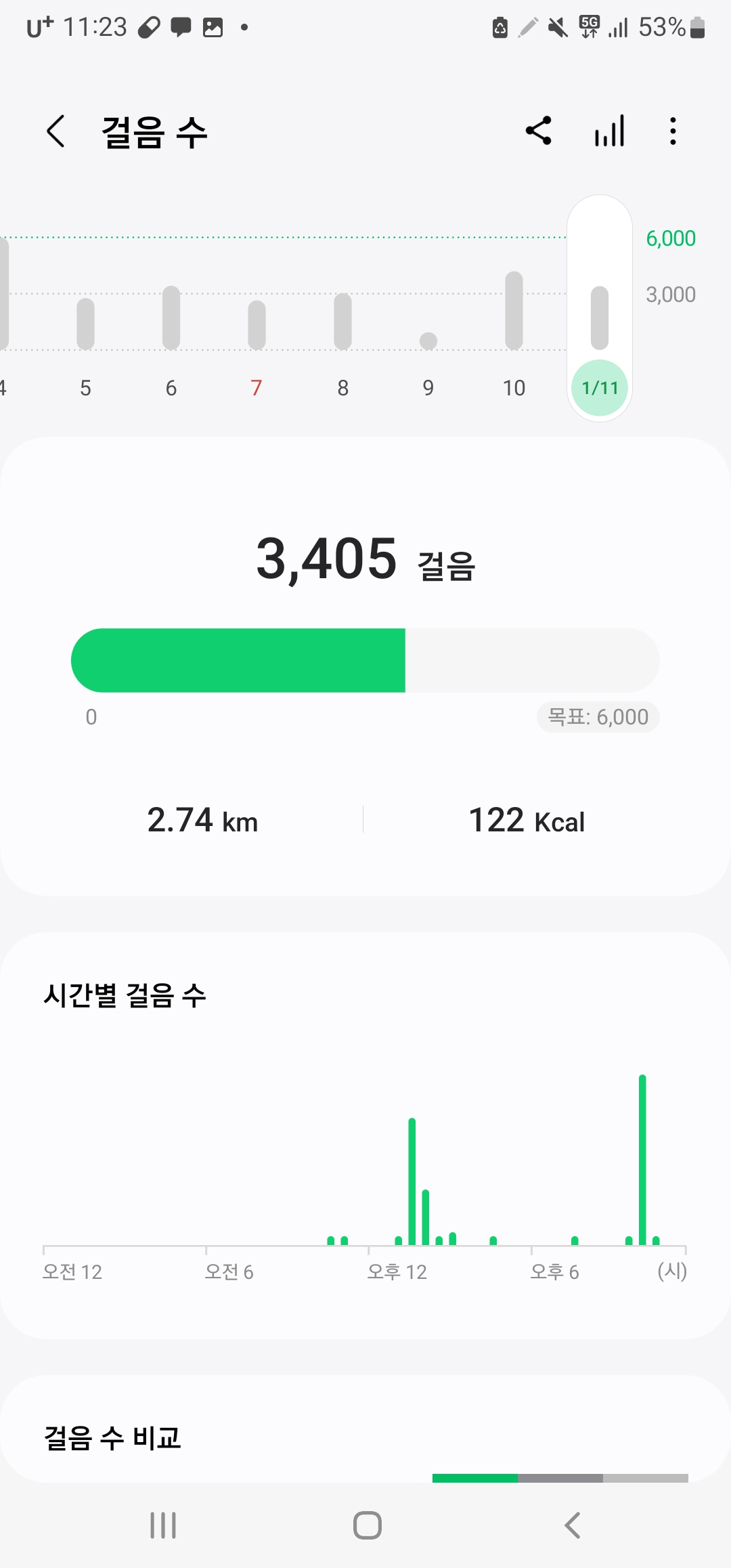 오늘도 열심히 걸었네요 생각보다 많지 않아서 아쉬워요