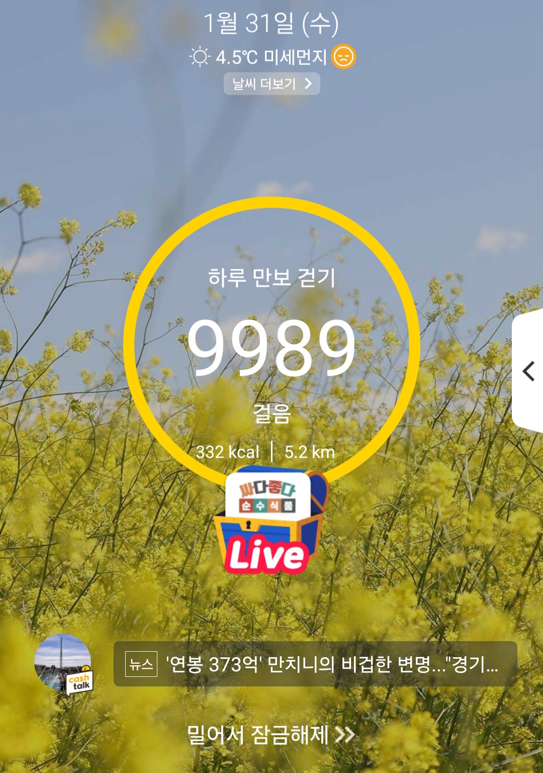 한시간 걷고 나니 기분이 아주 좋네요.
