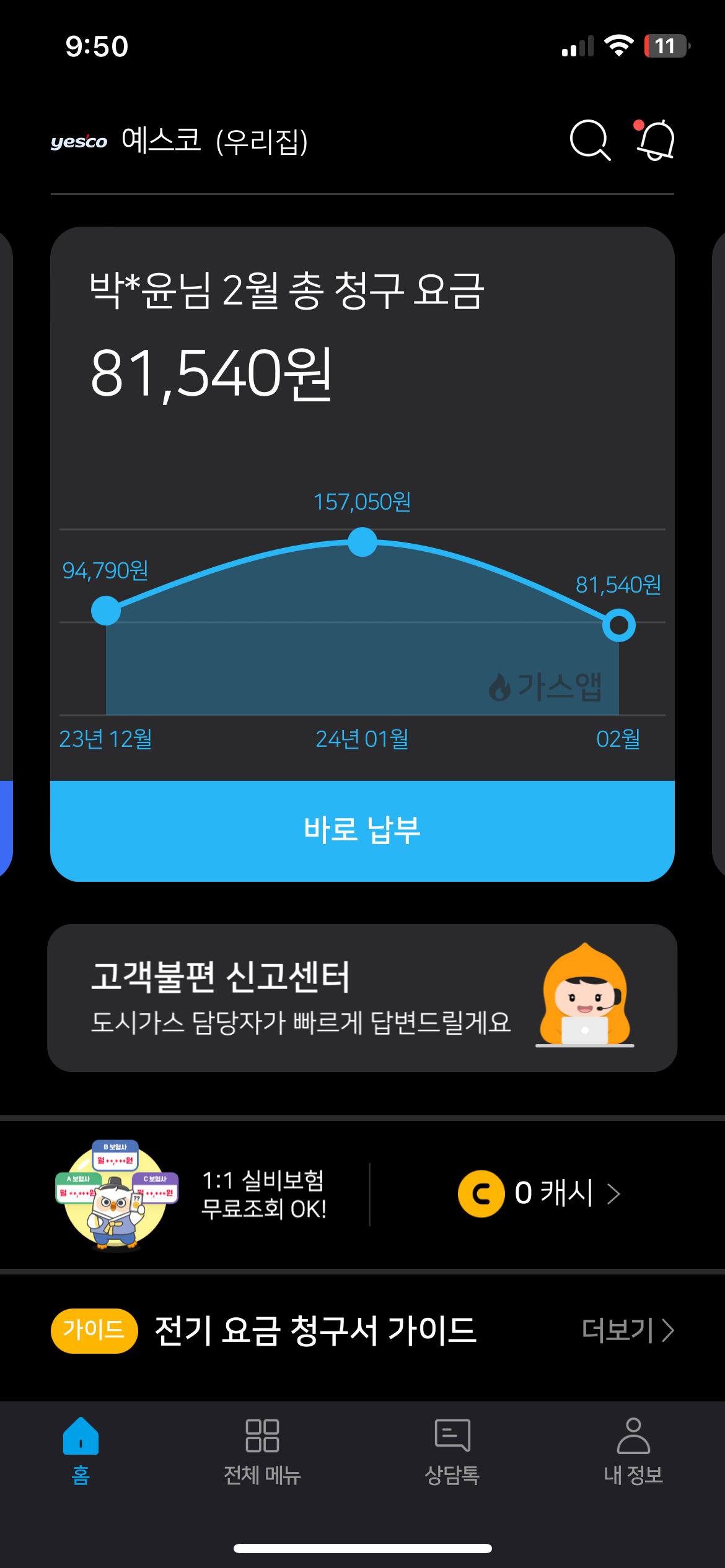 모바일로 가스 사용량 확인했어요