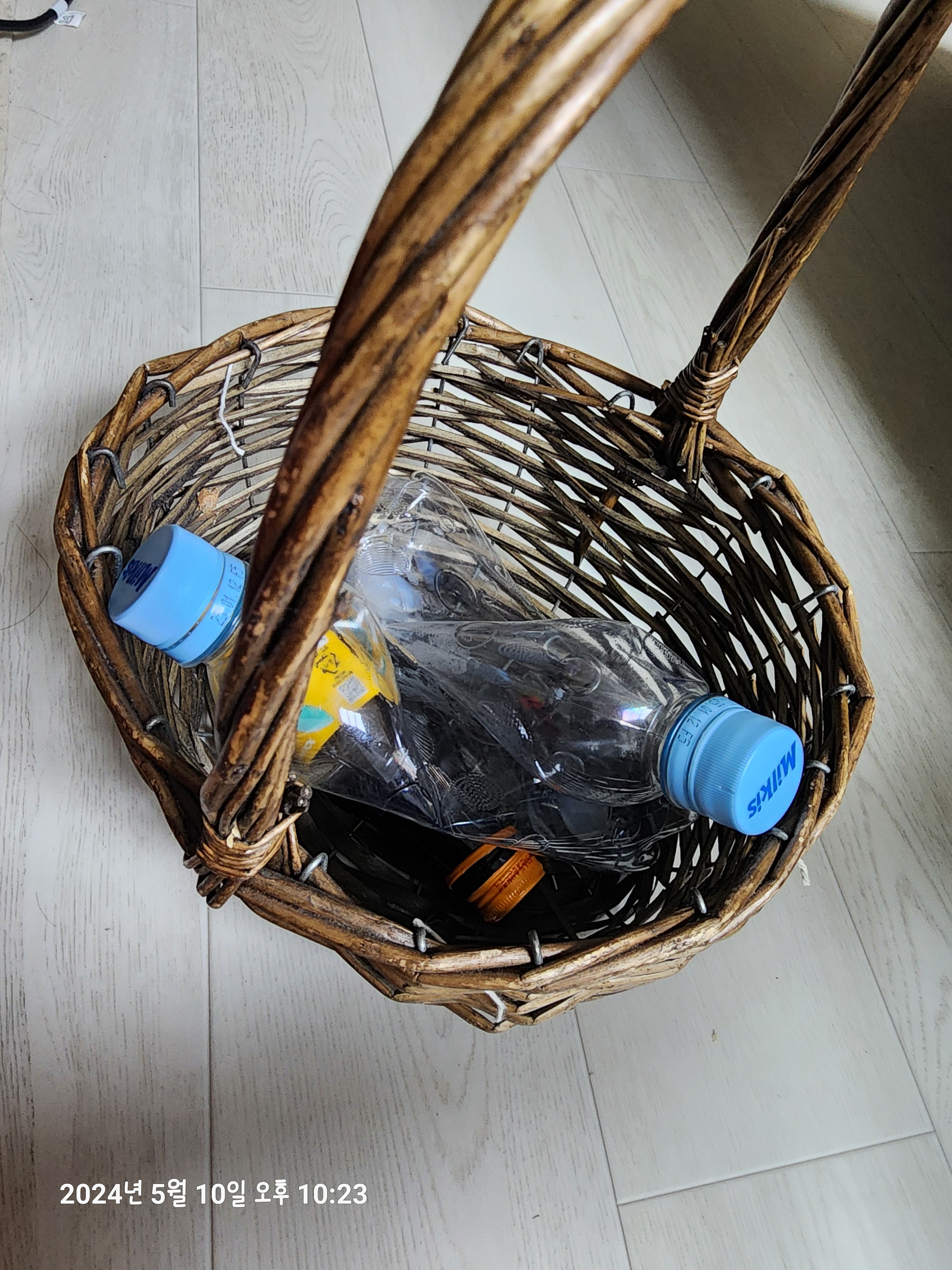 매일 분리수거할 수 있어서 큰 통이 필요없더라구요. 귀엽게 바구니 이용하고 있어요 ^^