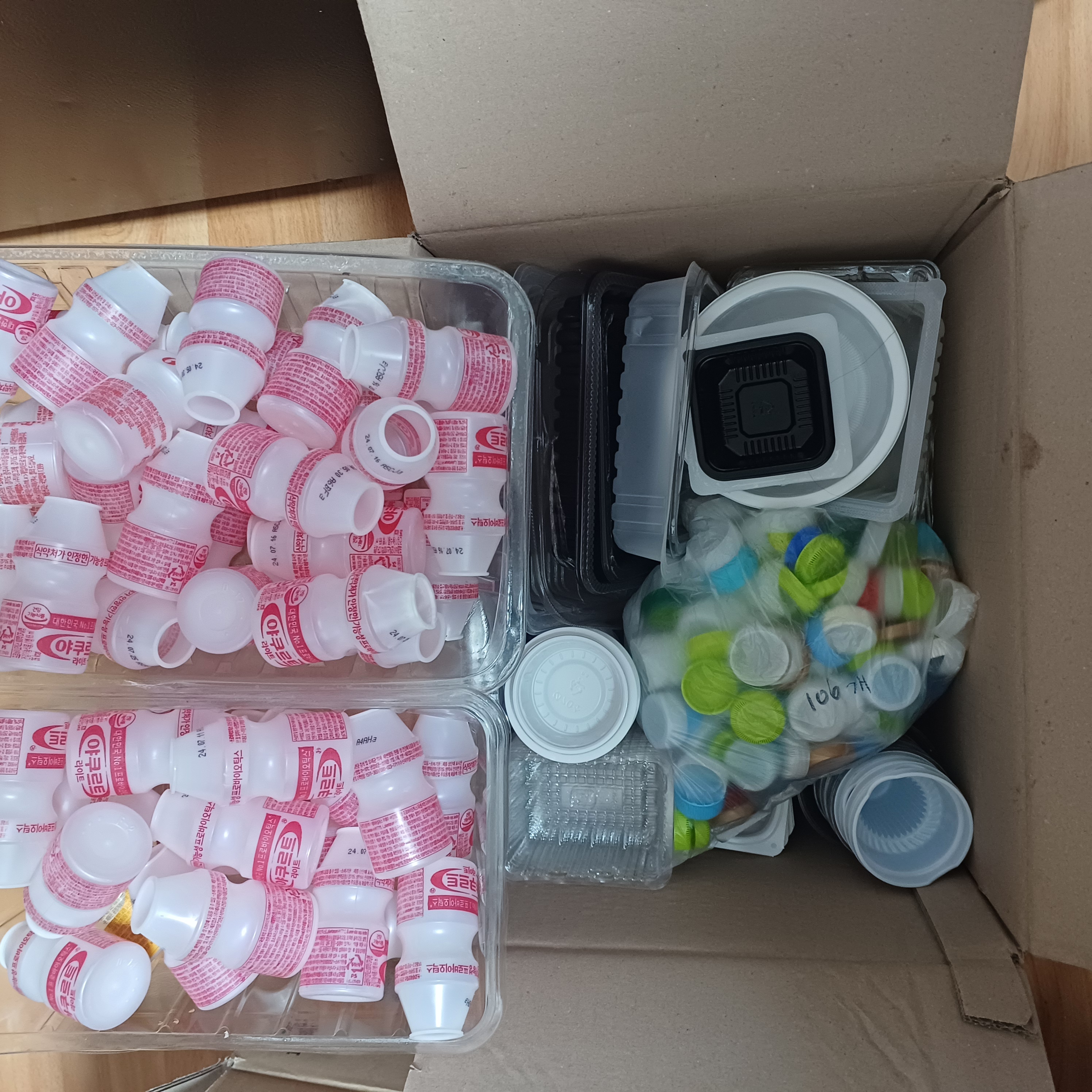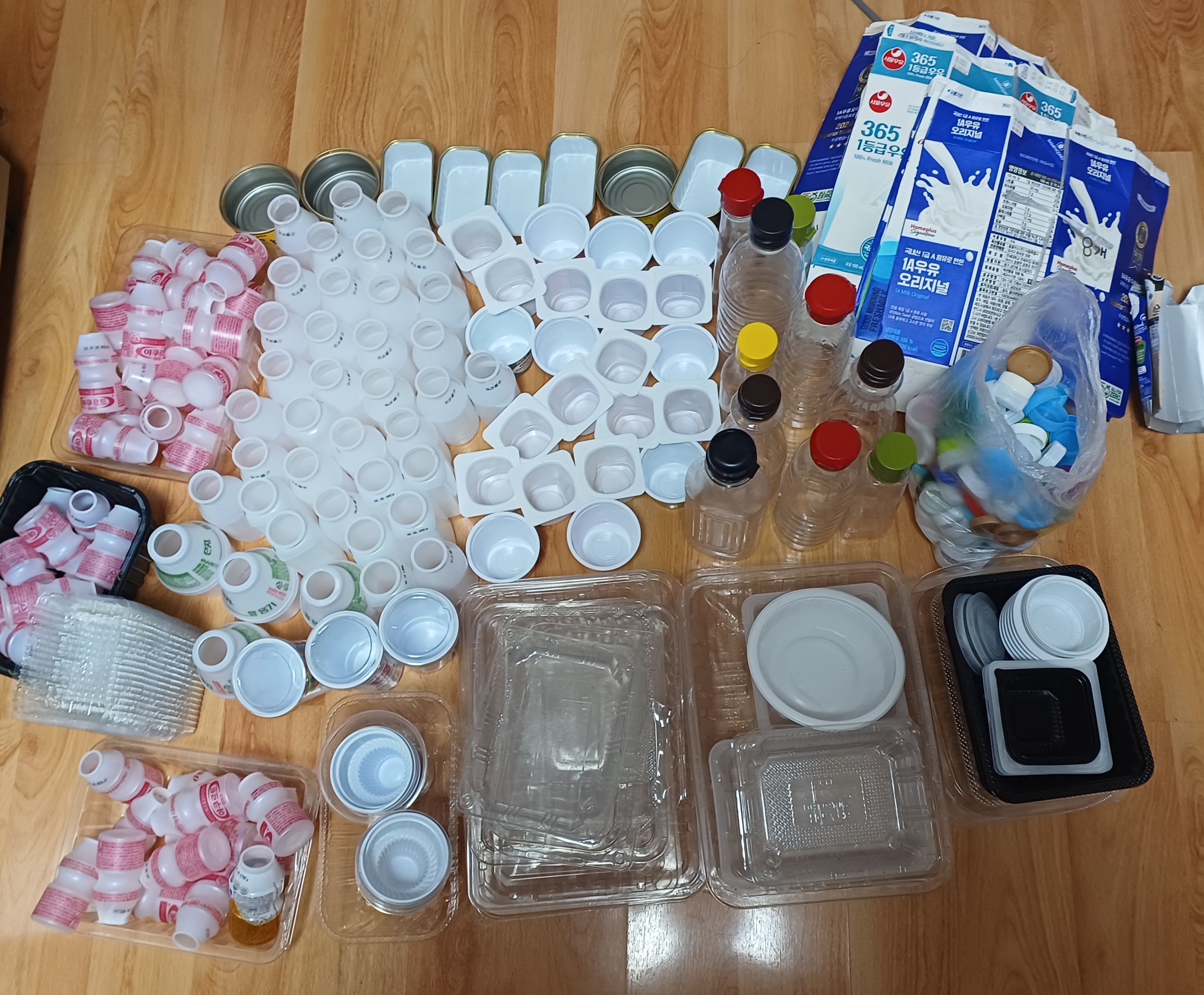 음료수 병이 가득 모였어요.